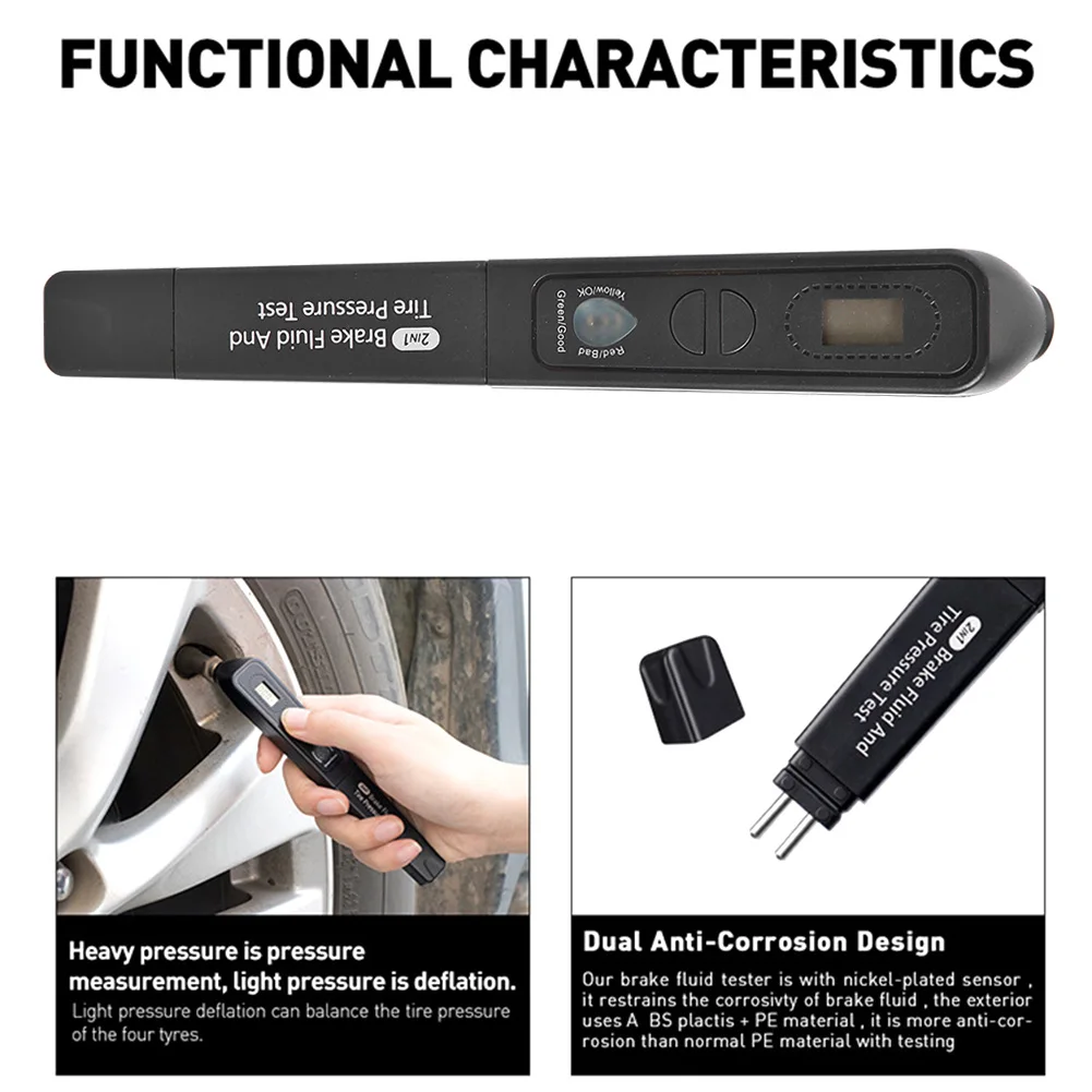 2 в 1 автомобильный тестер тормозной жидкости ручка для проверки качества цифровой датчик давления в шинах автомобильный инструмент для безопасного вождения диагностики