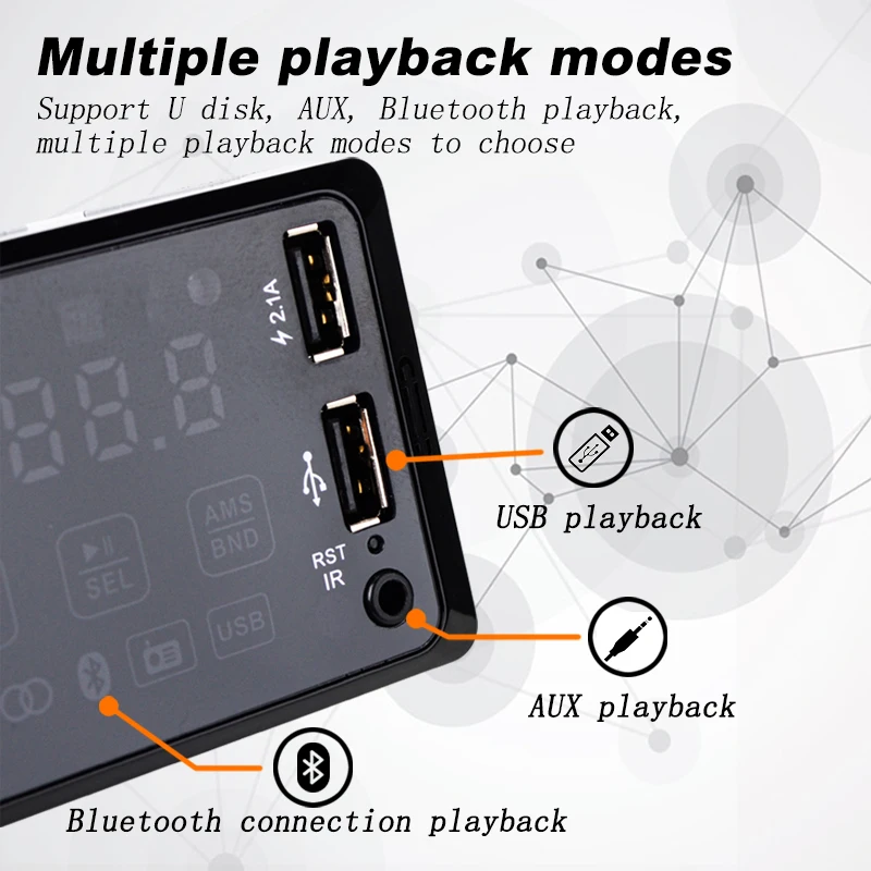 1. Два USBs (один имеет USB-порт для зарядки мобильный телефон, другой для чтения воспроизведения U-диска (аудио)