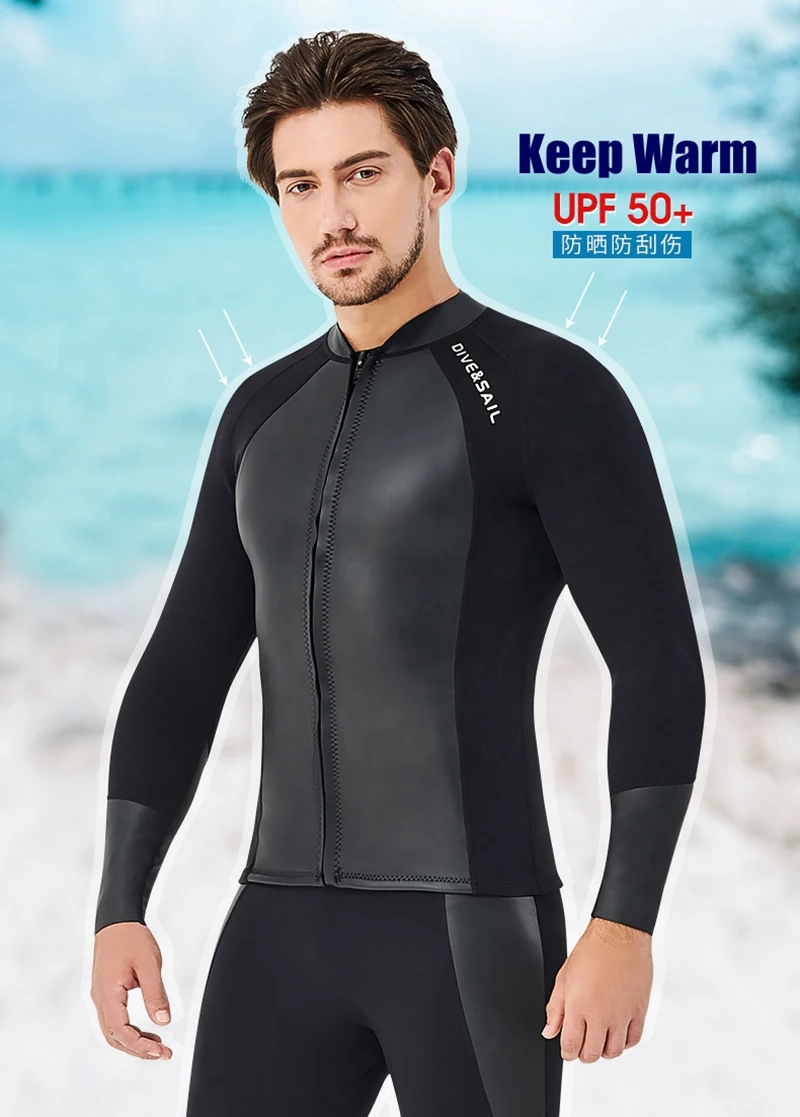 Мужской неопреновый гидрокостюм 2 мм, куртка с длинным рукавом и мо...