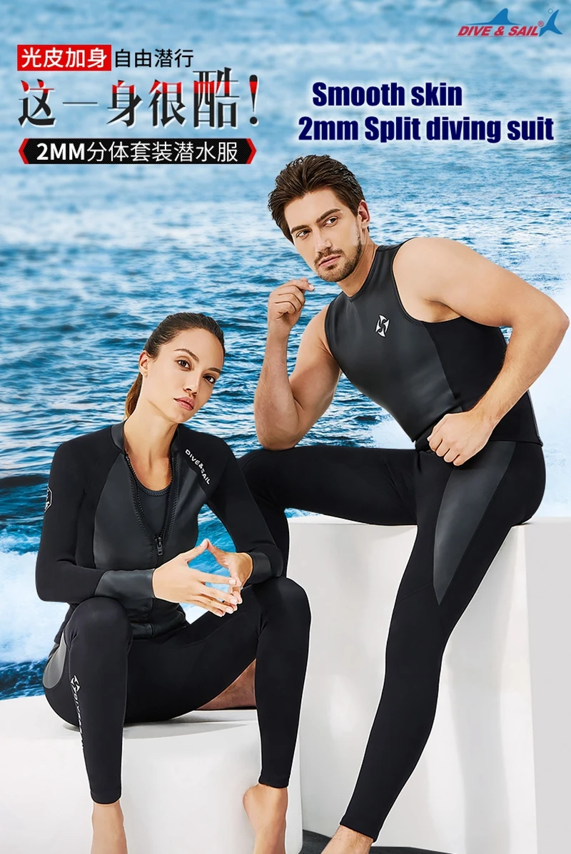 2 мм для мужчин и женщин неопрен гладкая кожа Дайвинг куртка длинные брюки жилет продаются отдельно Боди пальто брюки плавание Подводное плавание