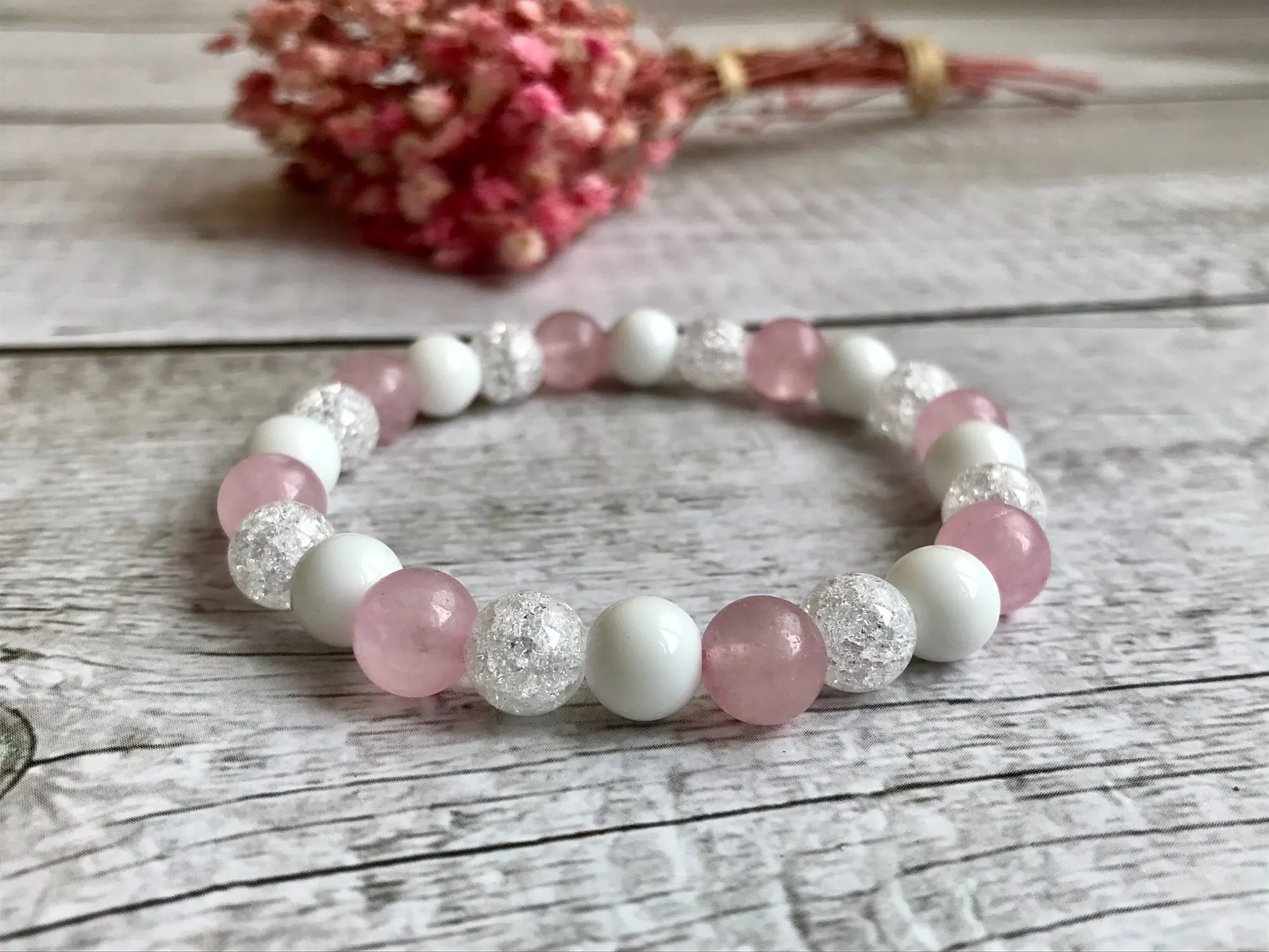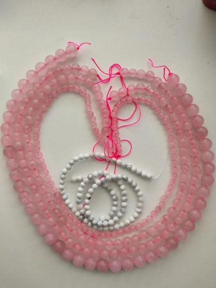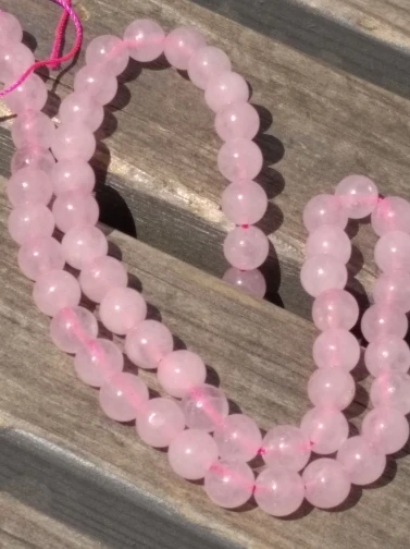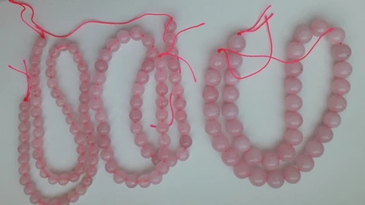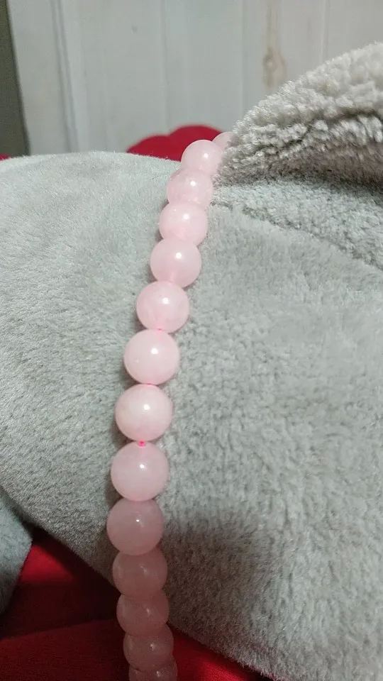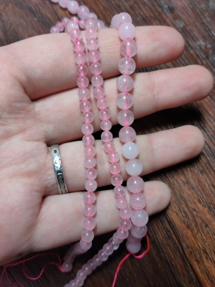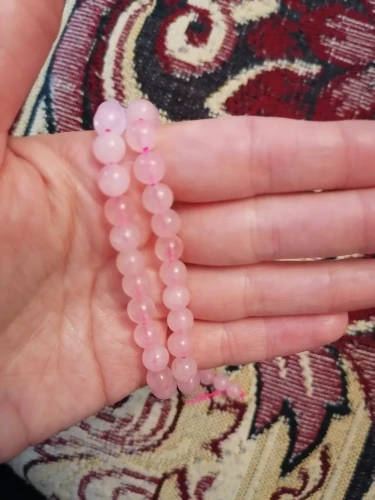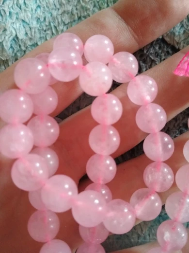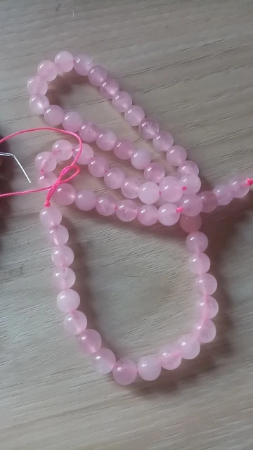 Бусины ровные, красивые, но это не камень, тем более не розовый кварц. Одну звезду снимаю за ненатуральность.