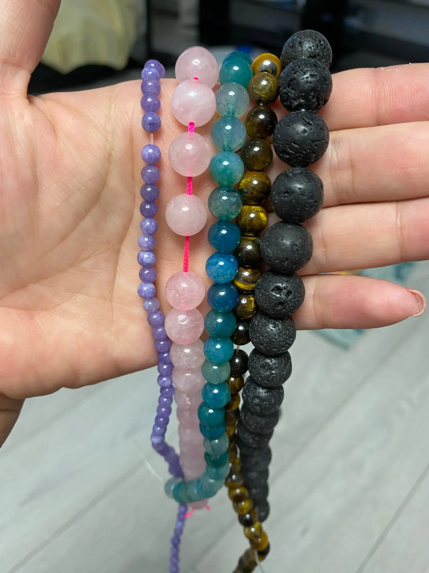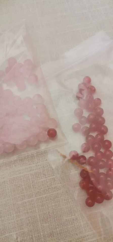 отличные бусинки, это похоже на тонированный халцедон. но очень неплохо. если вынуть розовую нить будет безусловно бледнее. такой весь жилистый камень. не равномерный по текстуре. но размер 10 мм положили одну нить. продавец обещал дослать.