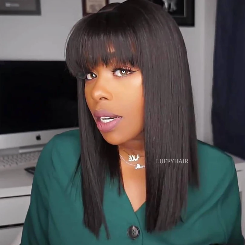 Парики из человеческих волос с челкой Luffywig, 180% плотности