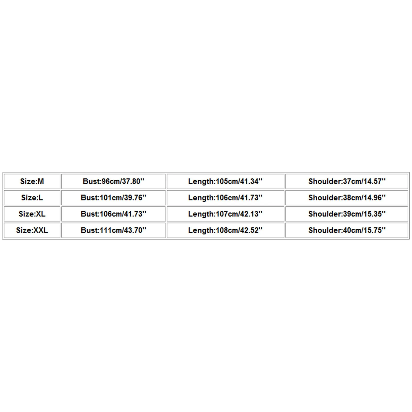 Обхват груди: 96 см/37,80 дюйма