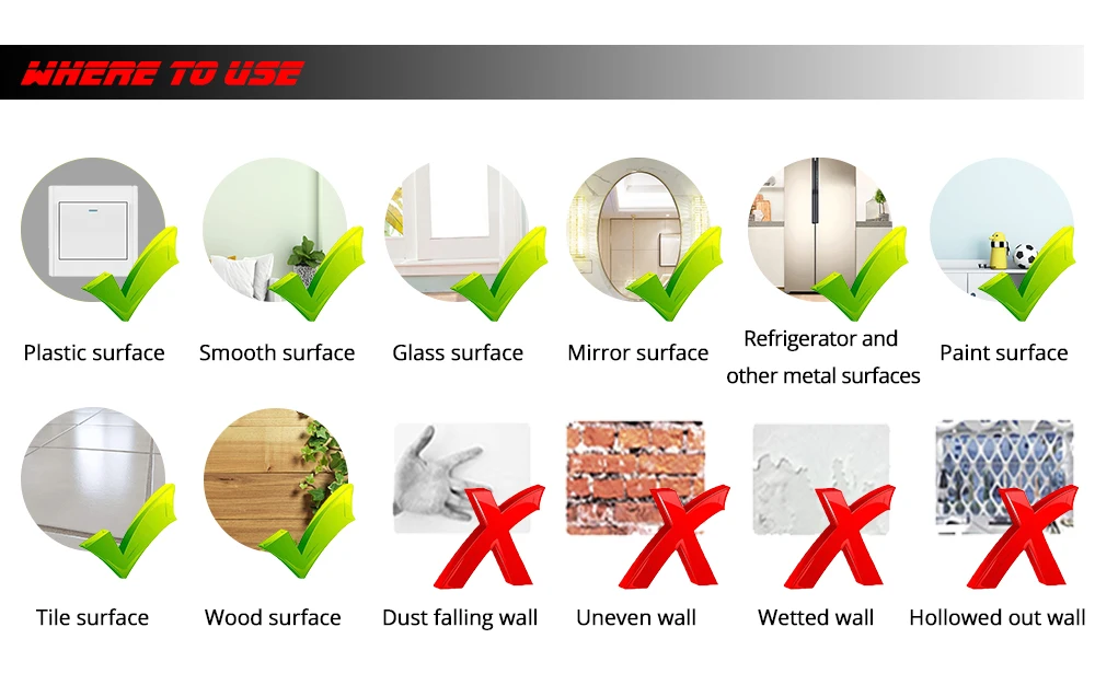 Where to applySmooth Wall Glass Metal Wood Etc