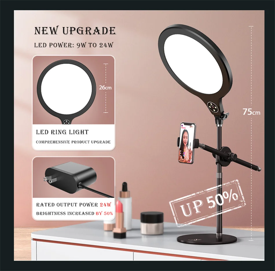кольцевая лампа штатив для телефона, лампа для фотосъемки круглая кольцевая, с держателем, Кольцевой светильник со штативом для селфи для Youtube, Tik tok, Vlog, Нейл-арт, фото-и видеосъемка