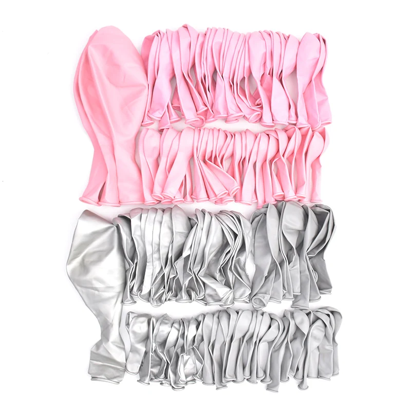 Набор включает в себя: 127 шт 5 дюймов розовый шар 60 шт 5 дюймов серый шар 30 шт 12 дюймов розовый шар 20 шт 12 дюймов серый шар 10 шт 18 дюймов розовый шар 5 шт 18 дюймов серый шар 2 шт