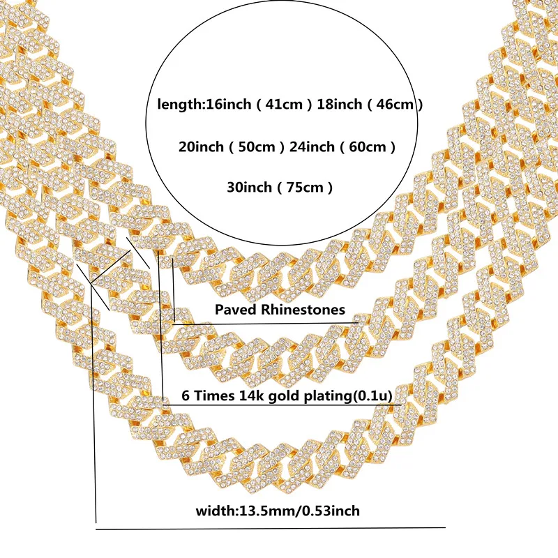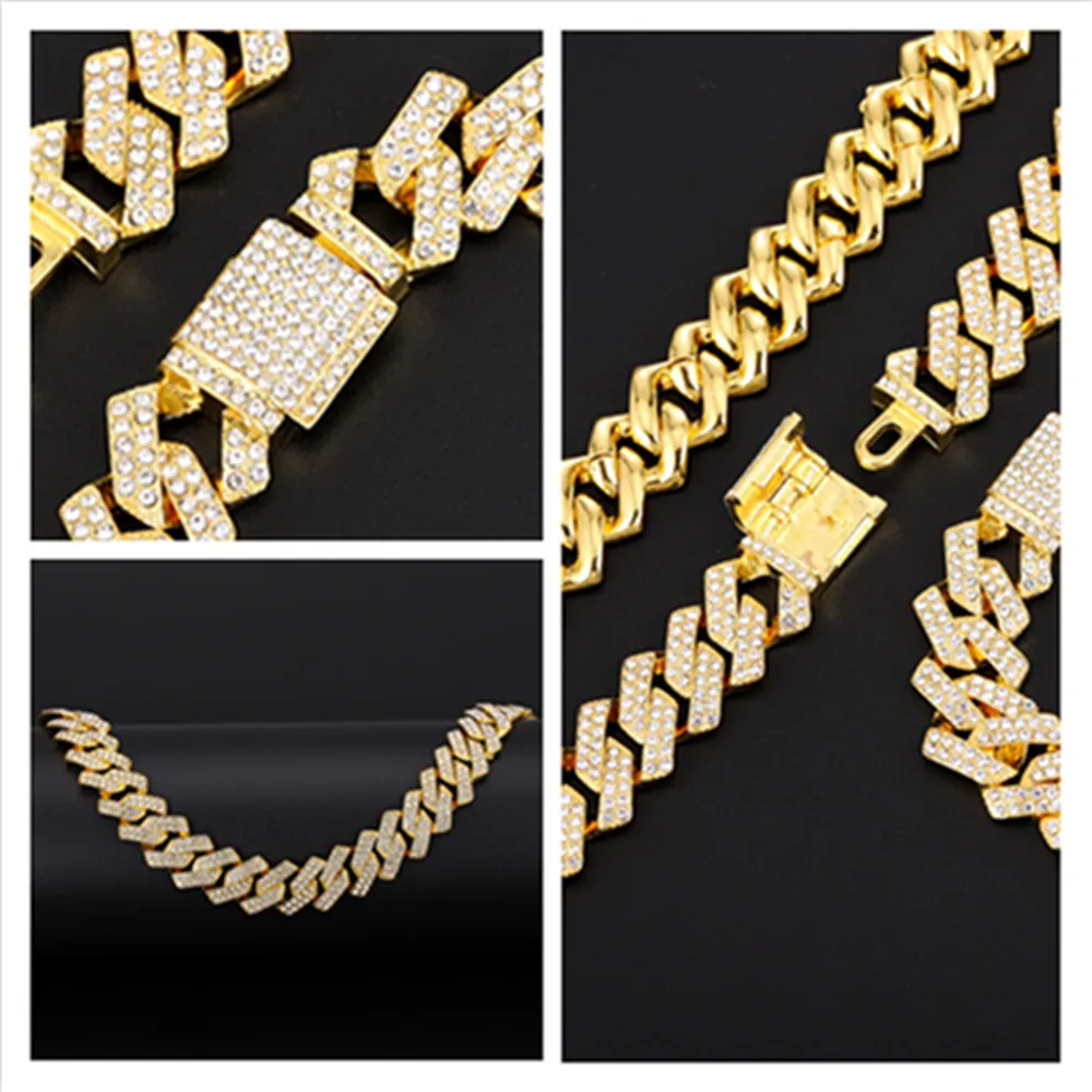 Ожерелье из кубинской цепи Майами для мужчин и женщин, колье в стиле хип-хоп со сверкающими кристаллами, стразы, цвет золотосеребро, 2021