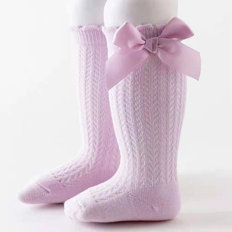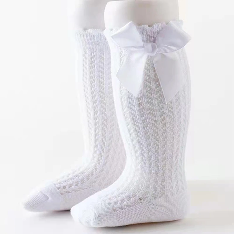 Летнее платье для маленьких девочек, носки для малышей, с бантом, длинные носки до колена Детские гольфы, детские мягкие хлопковые платья с сеточкой с испанский Стиль детей От 0 до 2 лет, носки из дышащей ткани