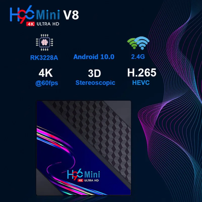 4K H96 Mini V8 Smart TV Box RK3228A Android 10 телеприставка 2 Гб 16 Гб для Youtube Media Player