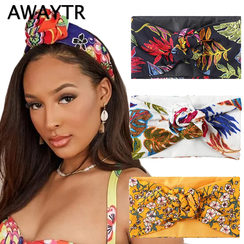 Женская бандана AWAYTR, бандана с цветочным принтом, проволочный ободок для волос, модный шарф с узлом, аксессуары для волос, 2021 новые головные уборы