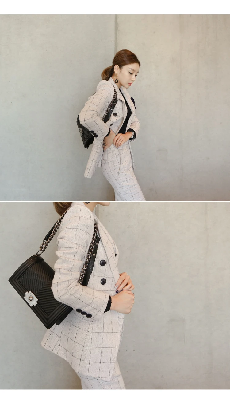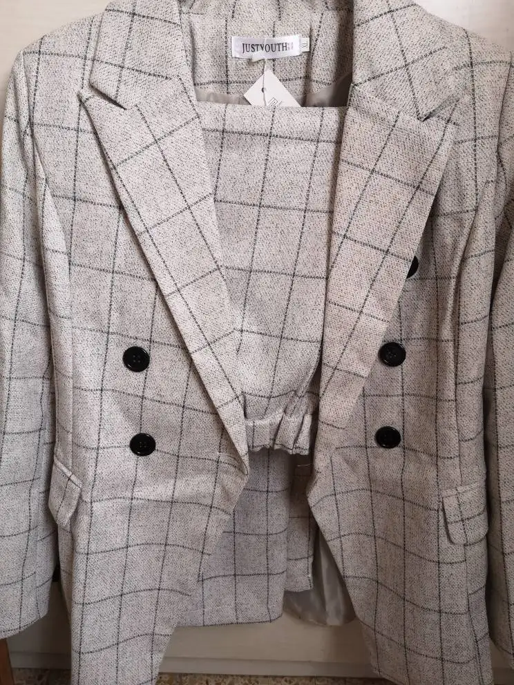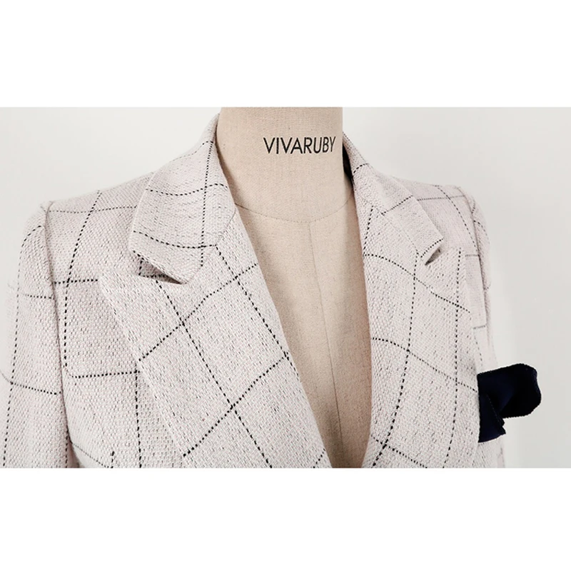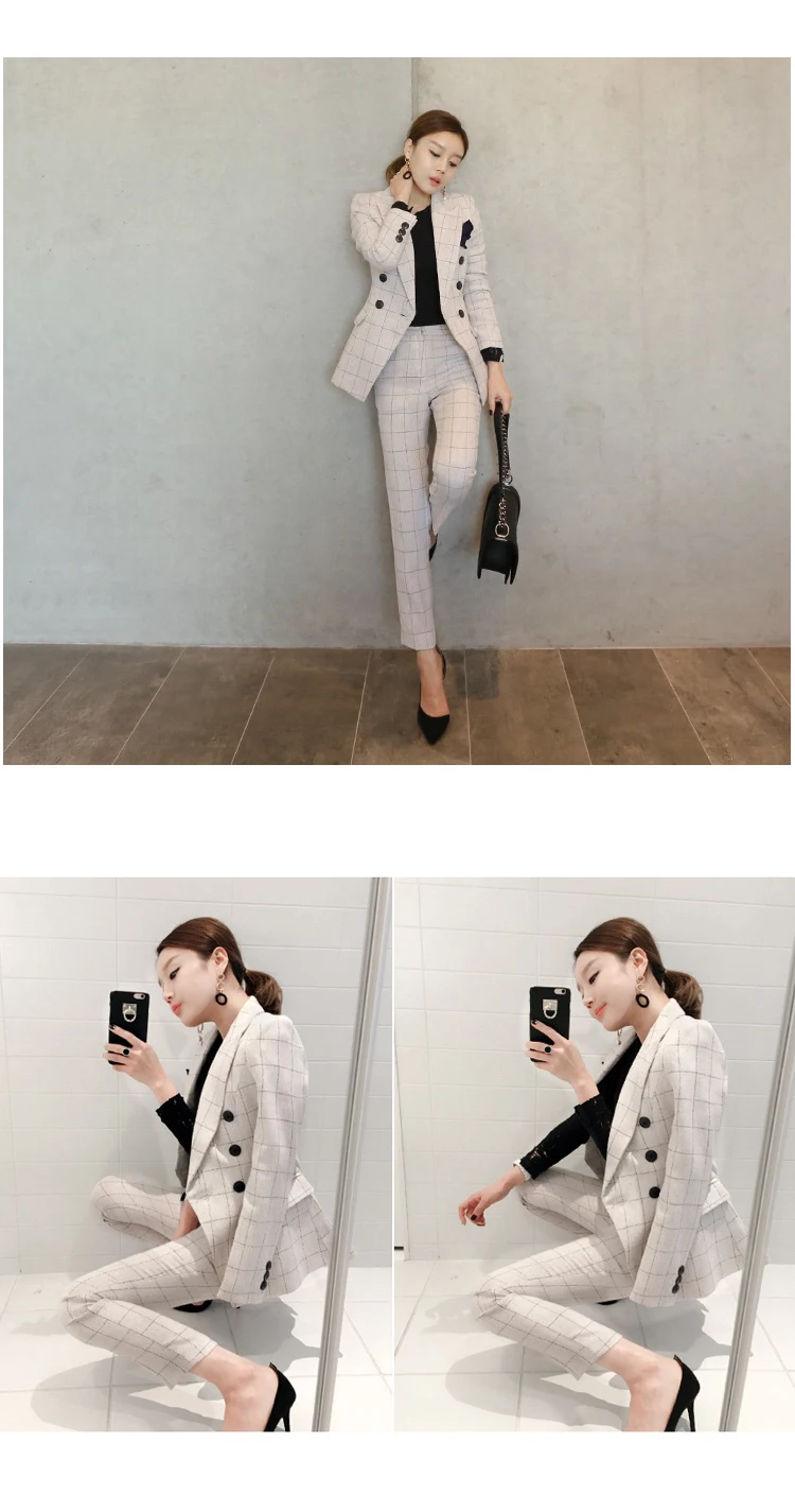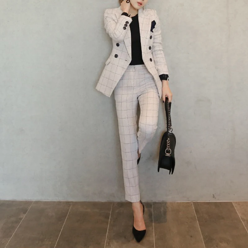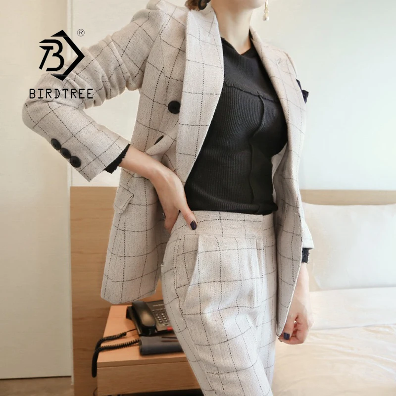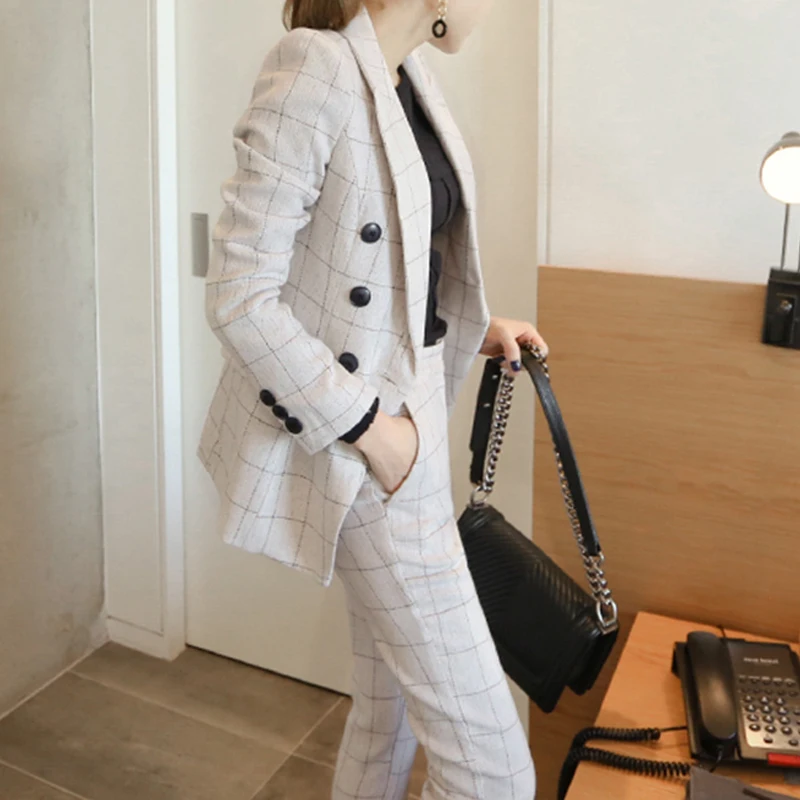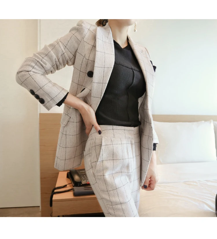 Женский винтажный клетчатый Блейзер, комплект из 2 предметов, двубортный пиджак и длинные брюки, весна 2021, S14602X