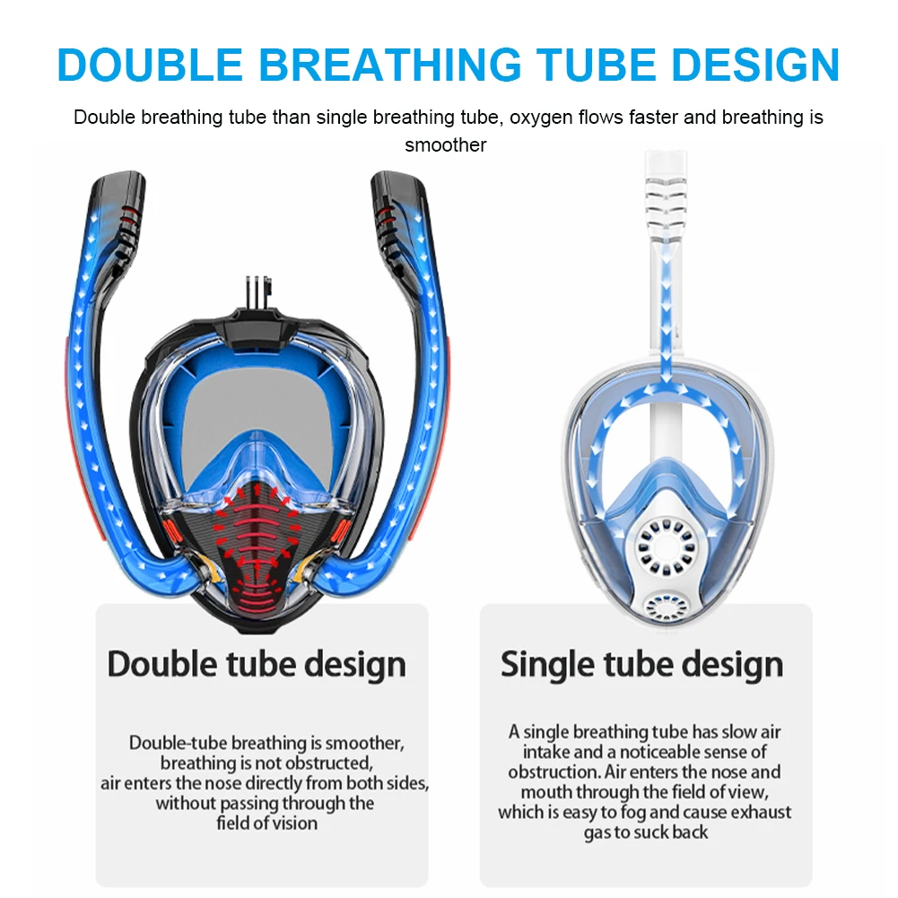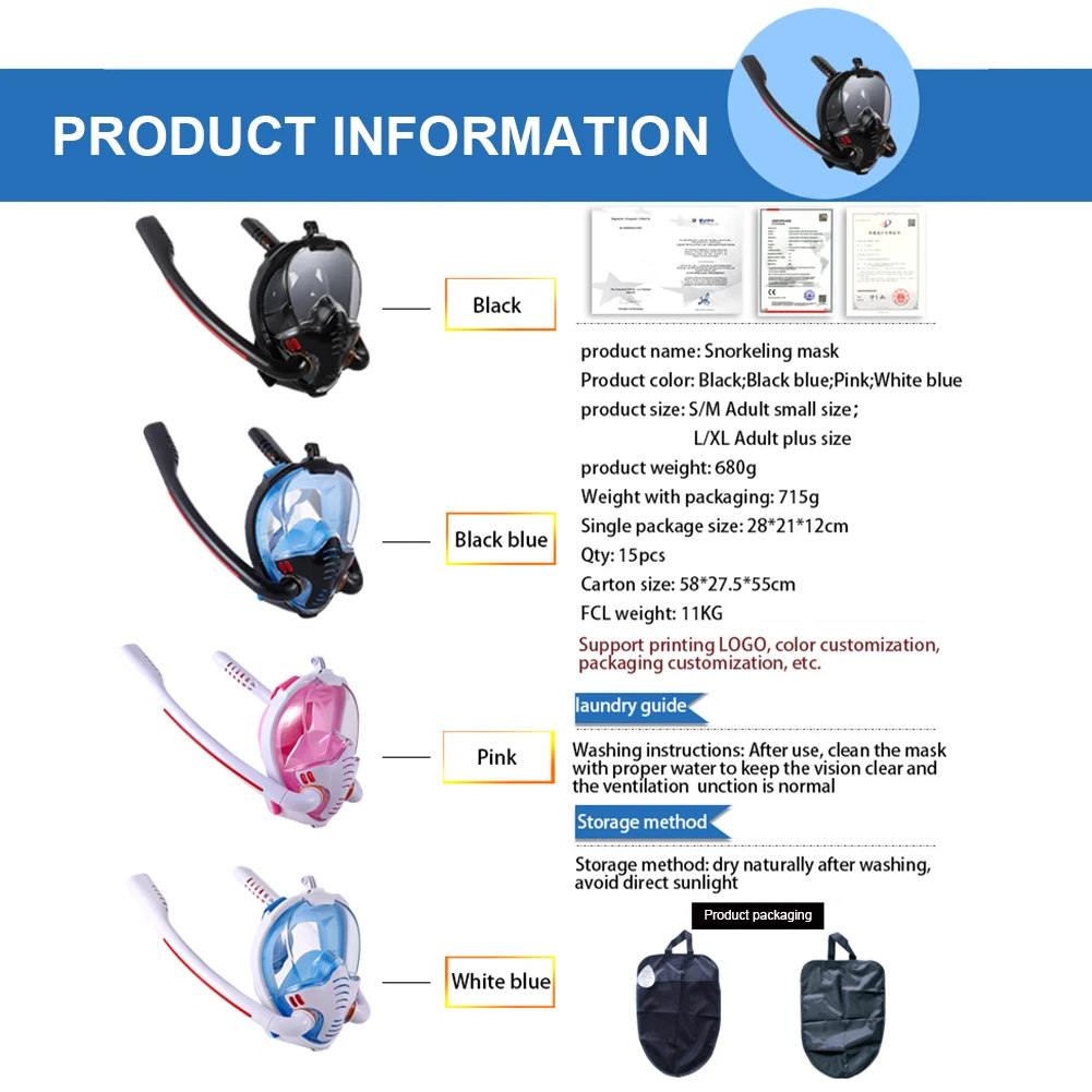 Универсальная маска для подводного плавания на все лицо, незапотевающая панорамная маска для плавания на 180 , маска для плавания с защитой от утечки, двойные трубки для взрослых, Прямая поставка