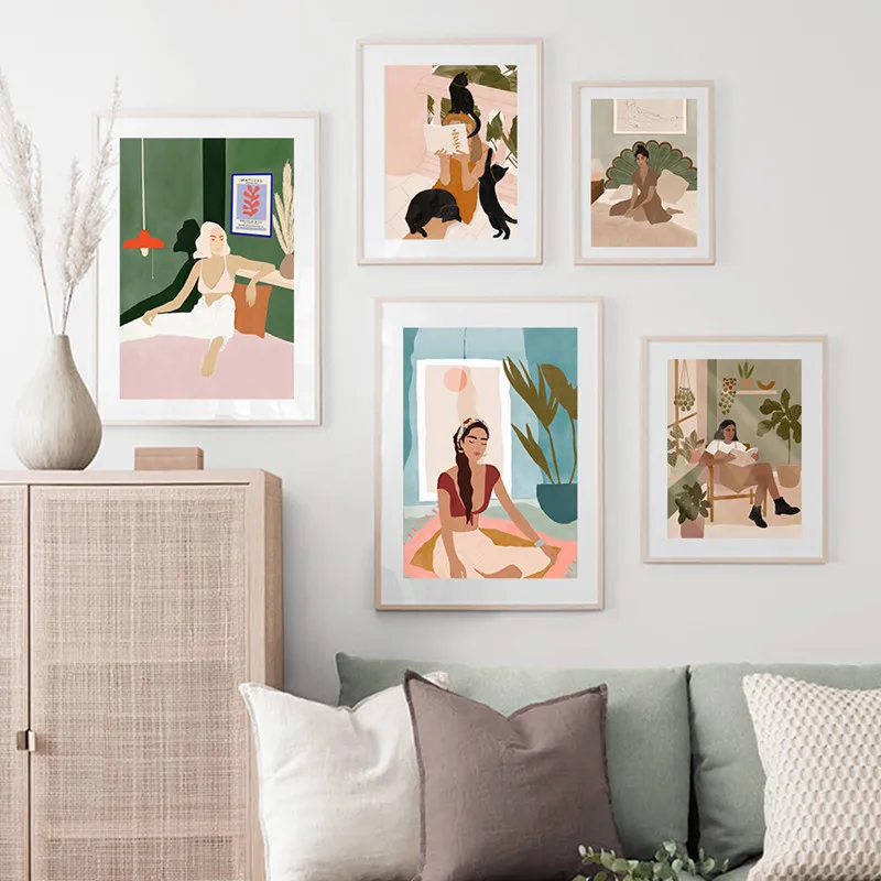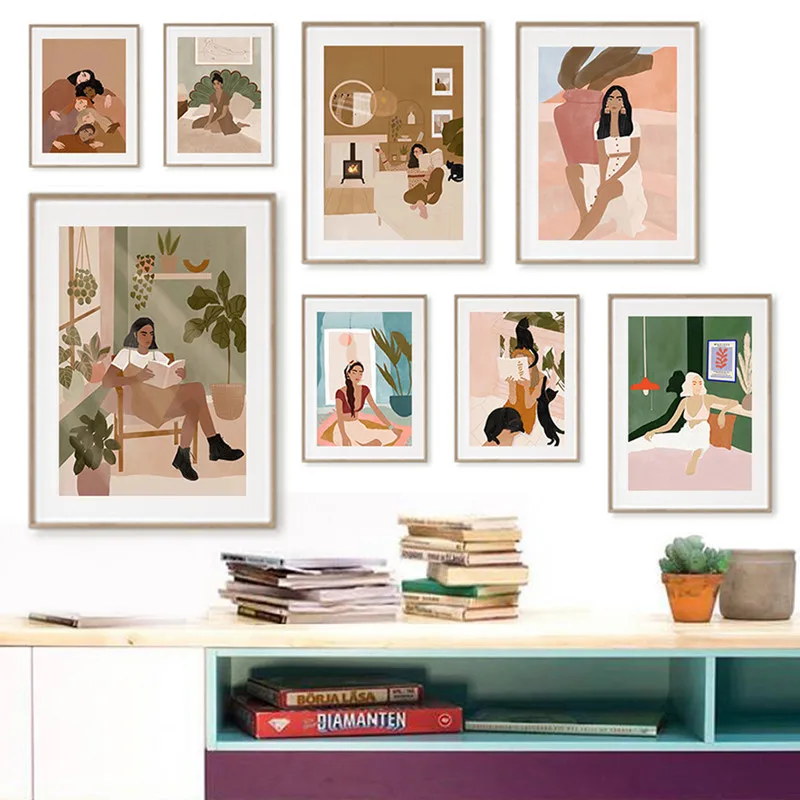 Красивая модная Картина на холсте для девушек, настенные художественные плакаты, принты, книга для чтения, йоги, фотография, праздничные настенные картины, украшение комнаты