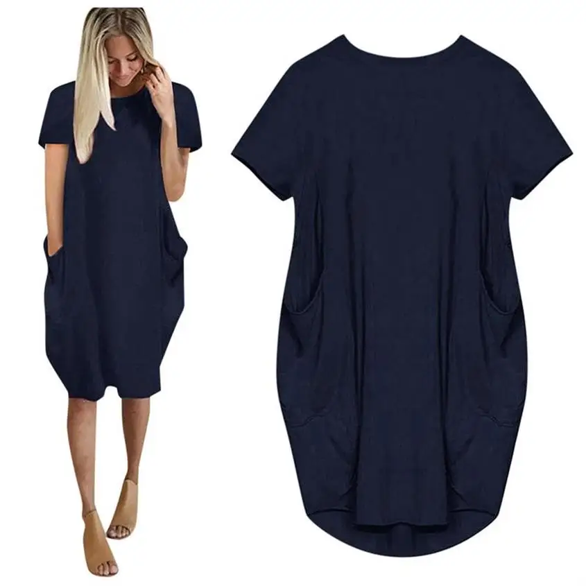 Женское платье с коротким рукавом, свободное, с карманами, летнее, ...