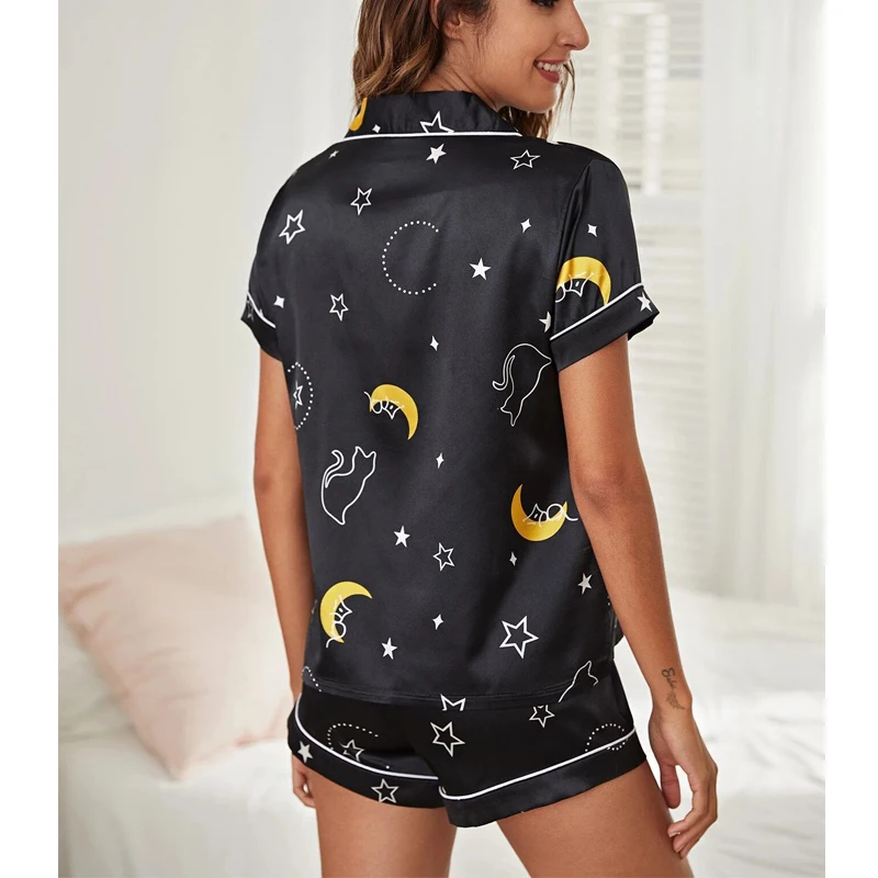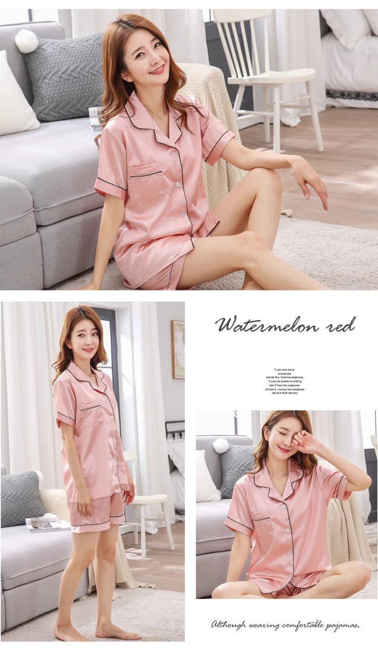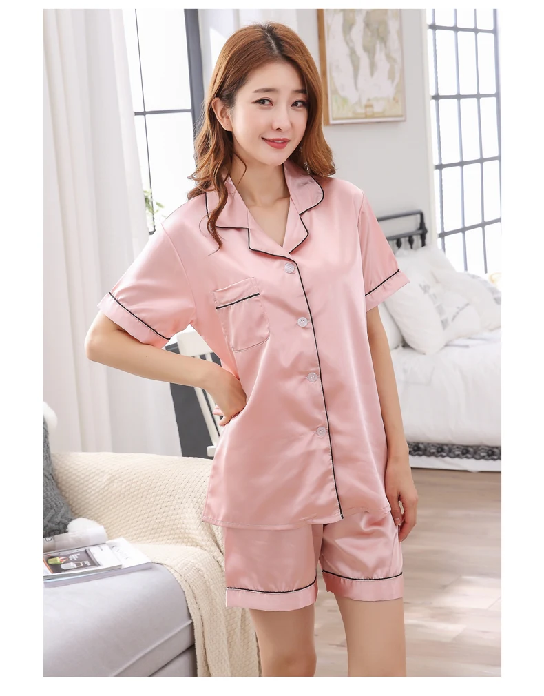 Пижама женская шелковая с шортами и длинным рукавом