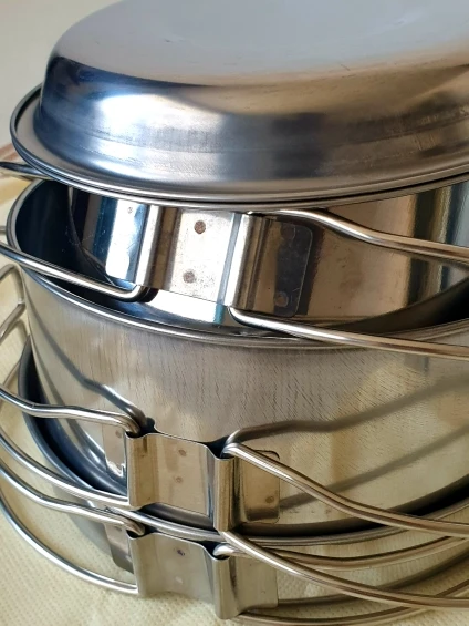 миниатюрная посуда, для приготовления 1-2 порций, в набор также входит складные нож+вилка+ложка