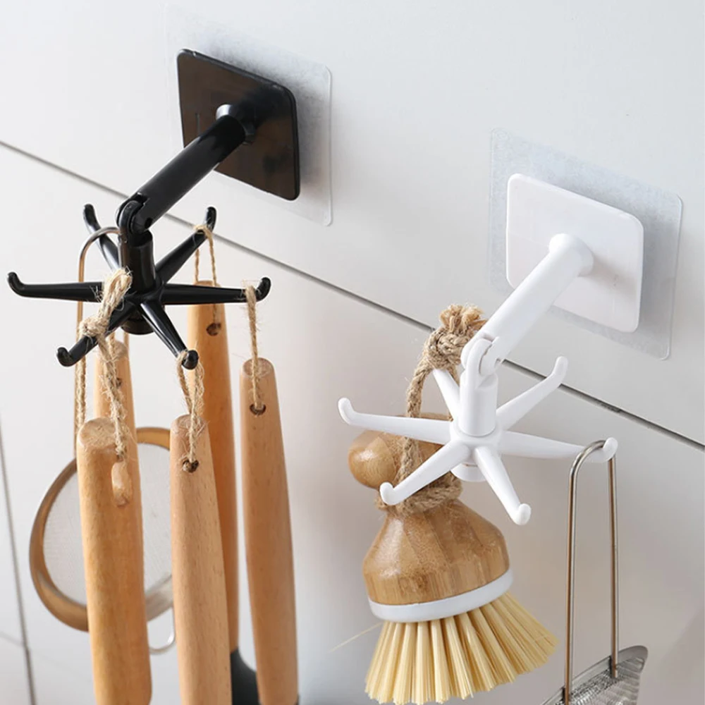 6 крючков Кухня стеллаж для выставки товаров домашний кухонный Организатор Кухня Органайзер аксессуары 360 градусов вращающийся шкаф вешалки посуда для Кухня удобство