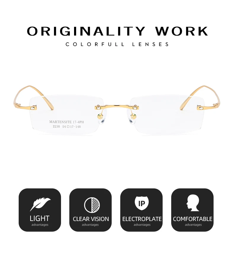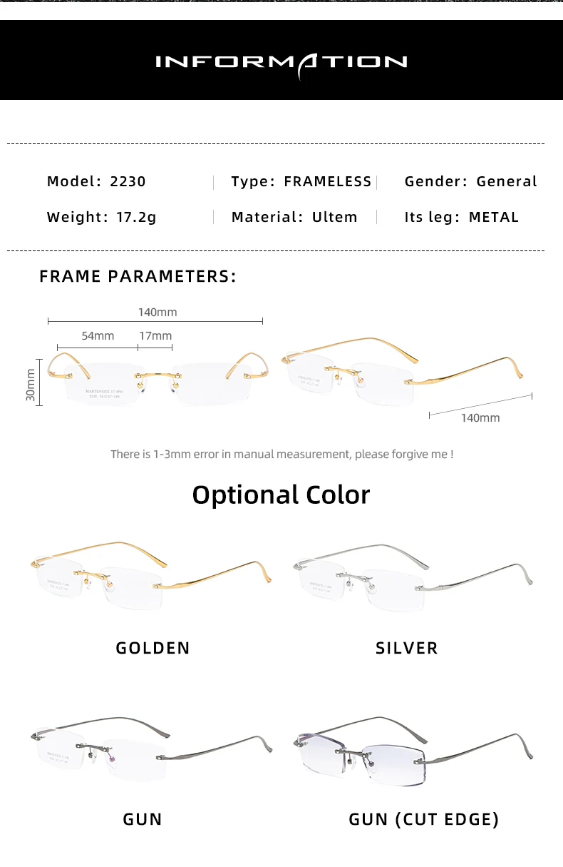 Очки ZIROSAT из сплава титана для мужчин и женщин, квадратные без оправы в Европейском стиле, рецептурные, 2230