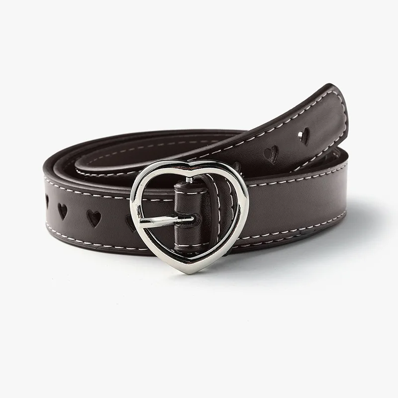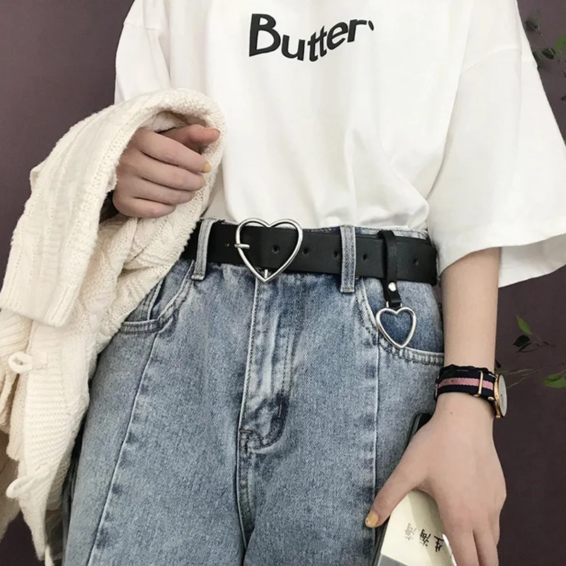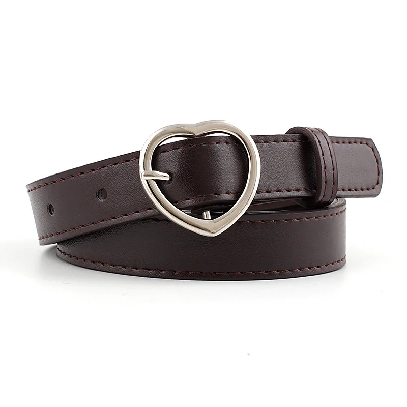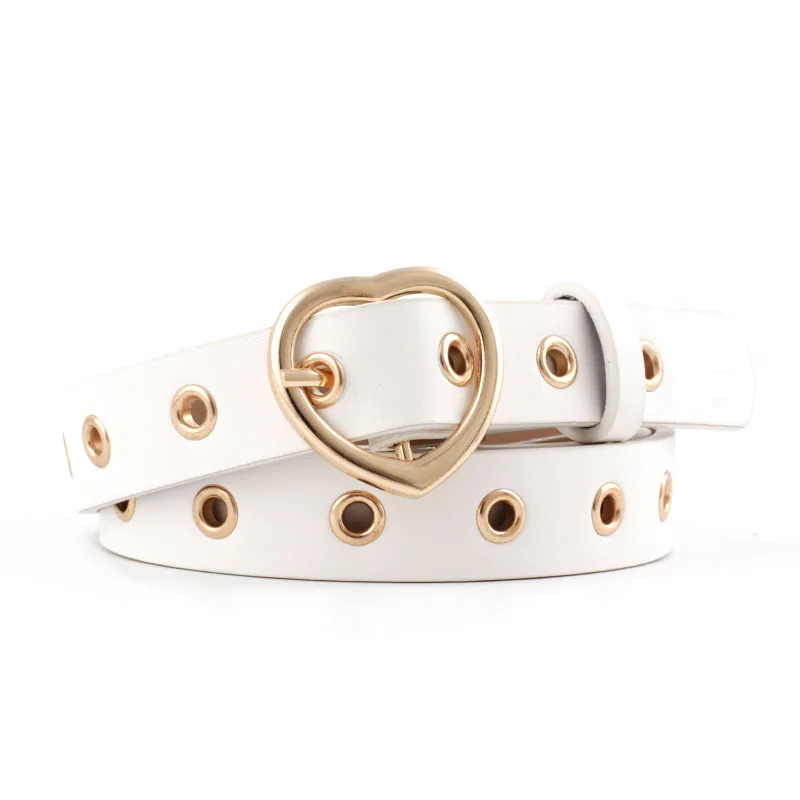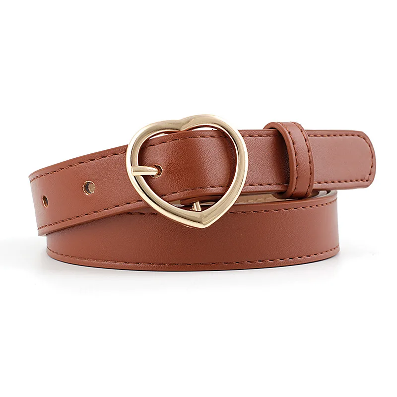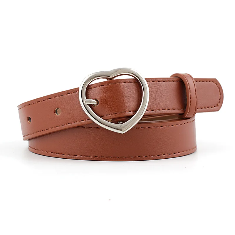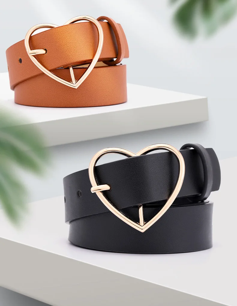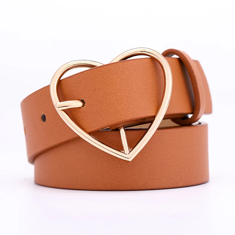 Ремень женский из искусственной кожи, с золотистой и серебристой пряжкой, 60 видов, милый в форме сердца