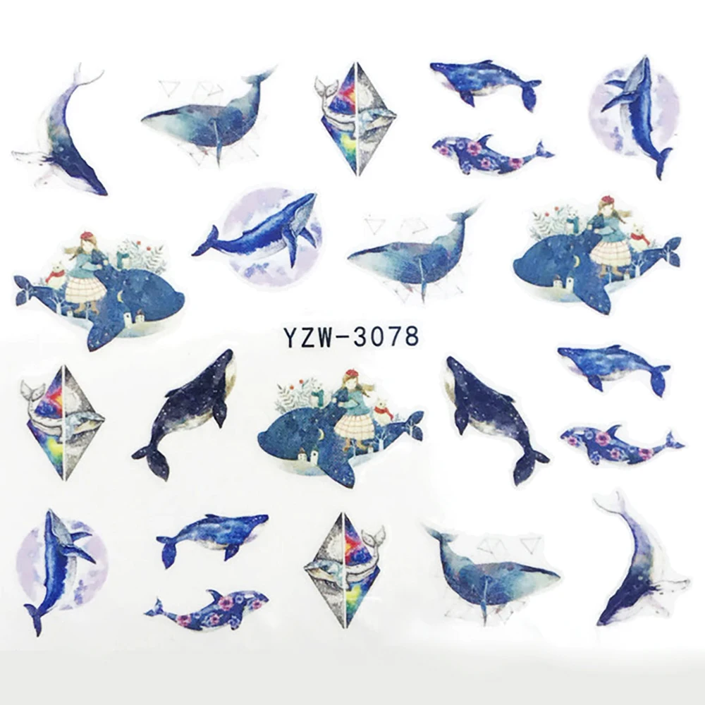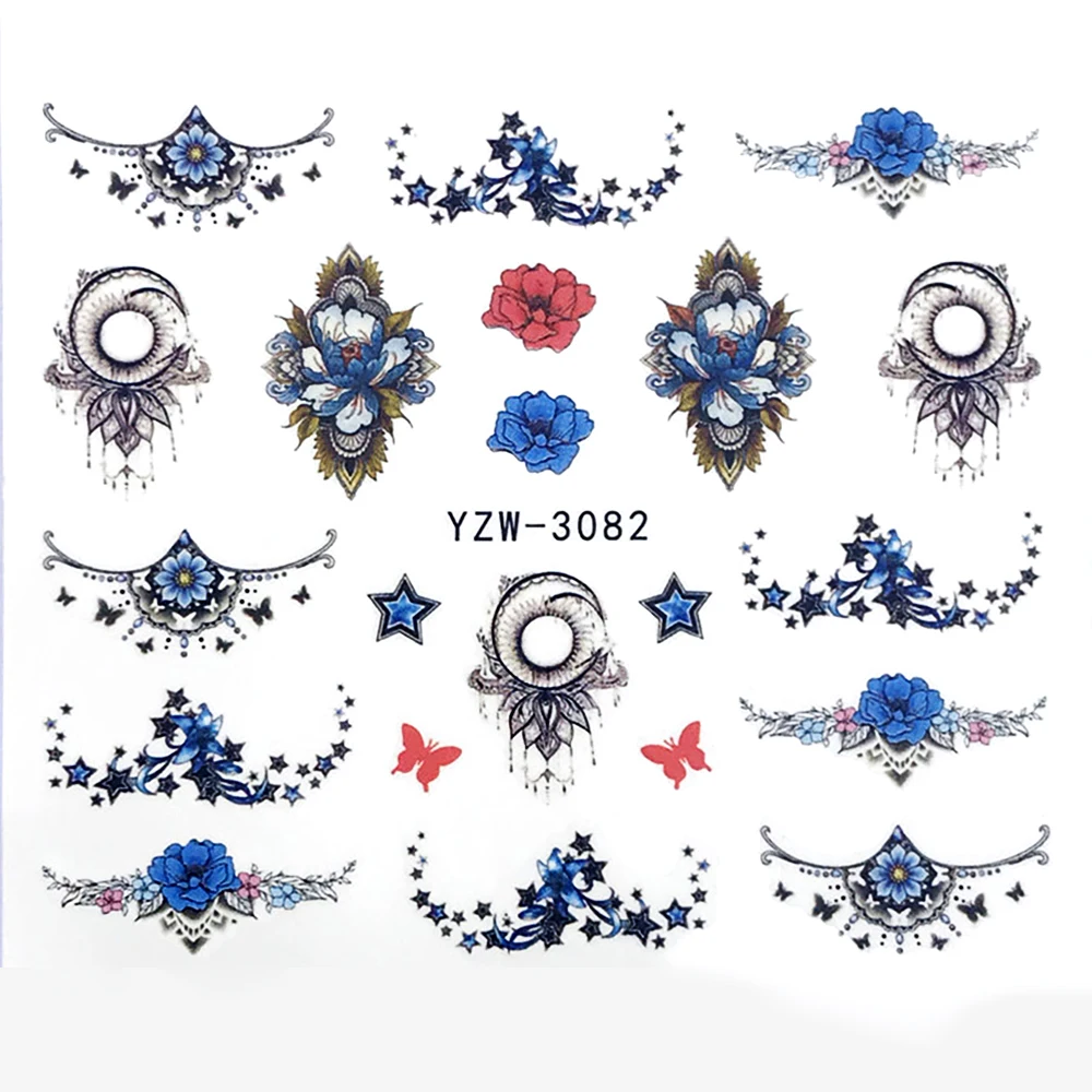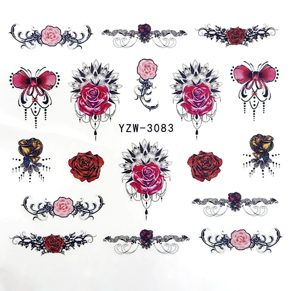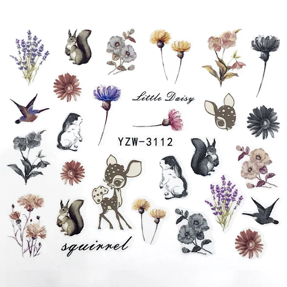 Красочные цветы наклейки для ногтей s вишни вода наклейки 3d наклейки для ногтей Фламинго животное Ретро Роза бабочка водяной знак