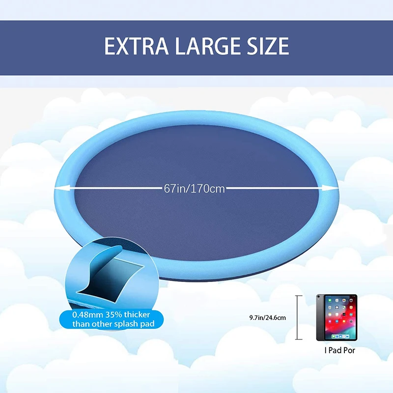 Открытый спринклер бассейн:Разбрызгиватель коврик заполненный водой бассейн для собак, детей, младенцев, кошек и других домашних животных. Распылительное отверстие может дать вам более 1 метра высокой струи воды, обеспечивая только правильное количество прохладного удовольствия для резких детей и домашних животных.Прочный, безопасный и без трещин:Лучший всплеск для собак-изготовлено из 100% экологически чистого 0,45 мм утолщенного ПВХ материала на 50% толще, чем другие надувные Брызговики, более прочные. Не содержит BPA и фталатов, не содержит вредных химических веществ во время игры, сохраняет ваших детей и домашних животных в прохладе и безопасности с одобренными на открытом воздухе игрушками для детей ясельного возраста.Идеальный летний подарок для собак и детей:Жаркое лето, подарите вашим детям и пушистым друзьям прохладные летние дни, а также место, где можно играть и веселиться. Этот коврик для игры в разбрызгиватель позволяет вам и вашим детям наслаждаться любимыми животными, которые должны быть идеальным летним подарком для пляжных игрушек на лужайке и летних вечеринок в бассейне для ваших детей и домашних животных.Простая установка:Вода может быть распылена непосредственно без надувания и подключения водопровода, что удобно для подключения и разрядки воды. Подключите Вход воды к смесителю с помощью водопроводной трубы, включите переключатель смесителя и налейте воду в распылительную прокладку, и вода будет выдуваться как фонтан.Примечание:1. Перед использованием бассейна для собак обрежьте ногти.2. Пожалуйста, избегайте собак, чтобы укусить его во время игры, потому что бассейн сделан из ПВХ-пластика.3. Отрегулируйте направление распыления воды, регулируя давление воды или захватите край коврика и сложите носик внутрь.