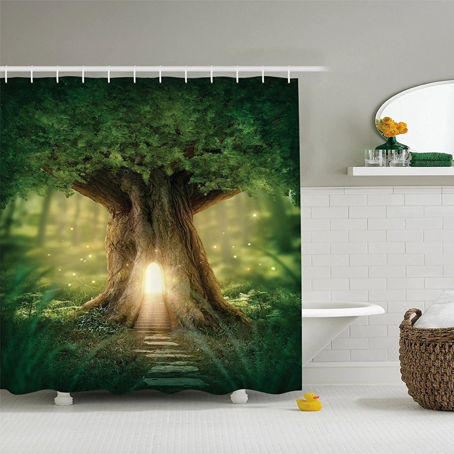 Богемный занавес для душа сказочное Дерево жизни светильник вая занавеска s In A Black Forest Woodsy дикая природа пейзаж зеленые растения ванная комната