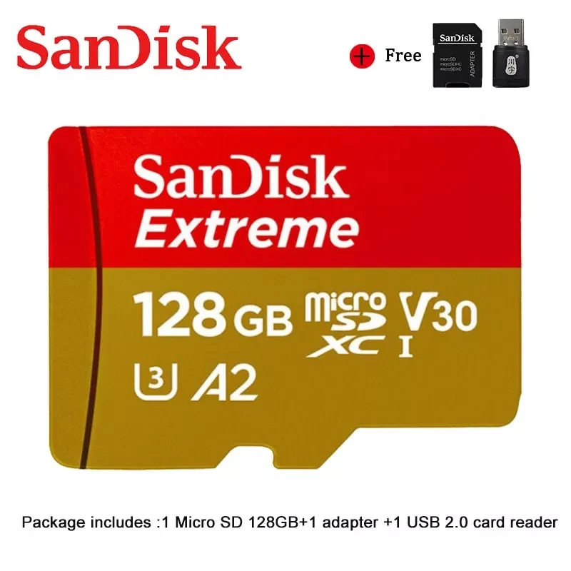 Карта памяти Micro SD SanDisk Extreme, UHS-I U3, V30, A2, 4K, 128 Г...