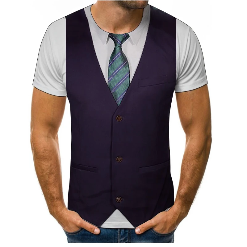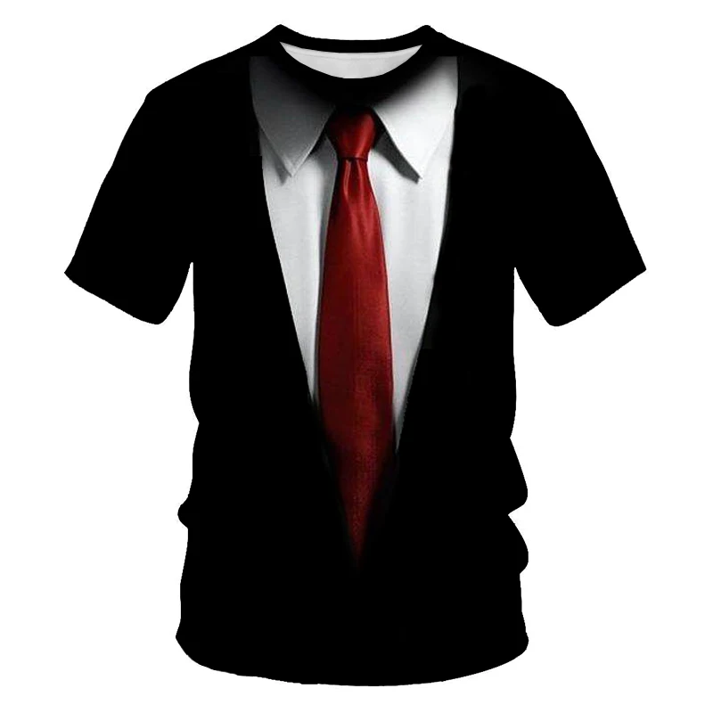 Футболка-смокинг мужской 3D печать забавная летняя рубашка с коротк...