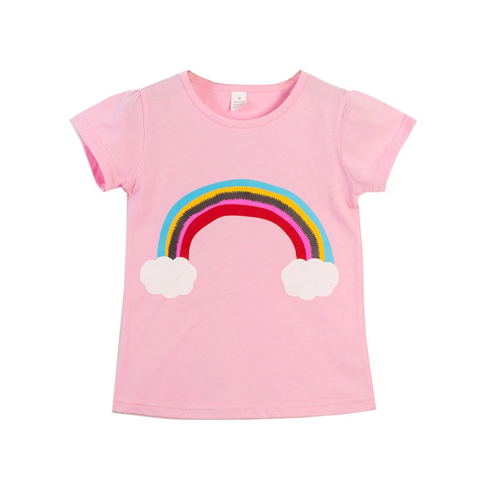 Летняя футболка для девочек, детский хлопковый топ с радужным мультяшным единорогом, модная детская одежда, пляжные повседневные футболки JYF