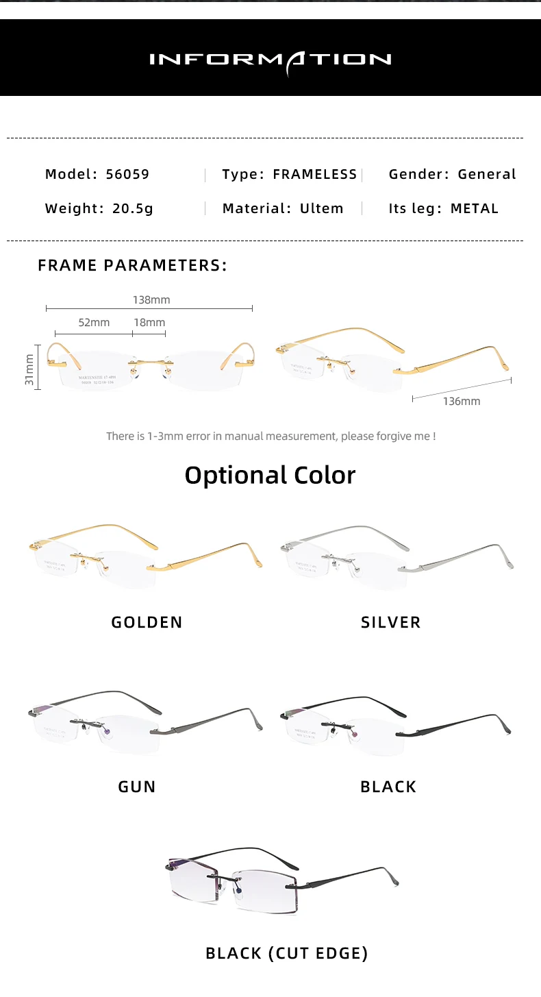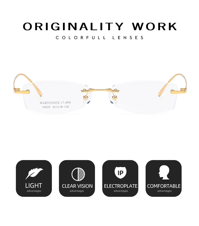 Очки ZIROSAT в титановой оправе без оправы, для мужчин и женщин, 56059