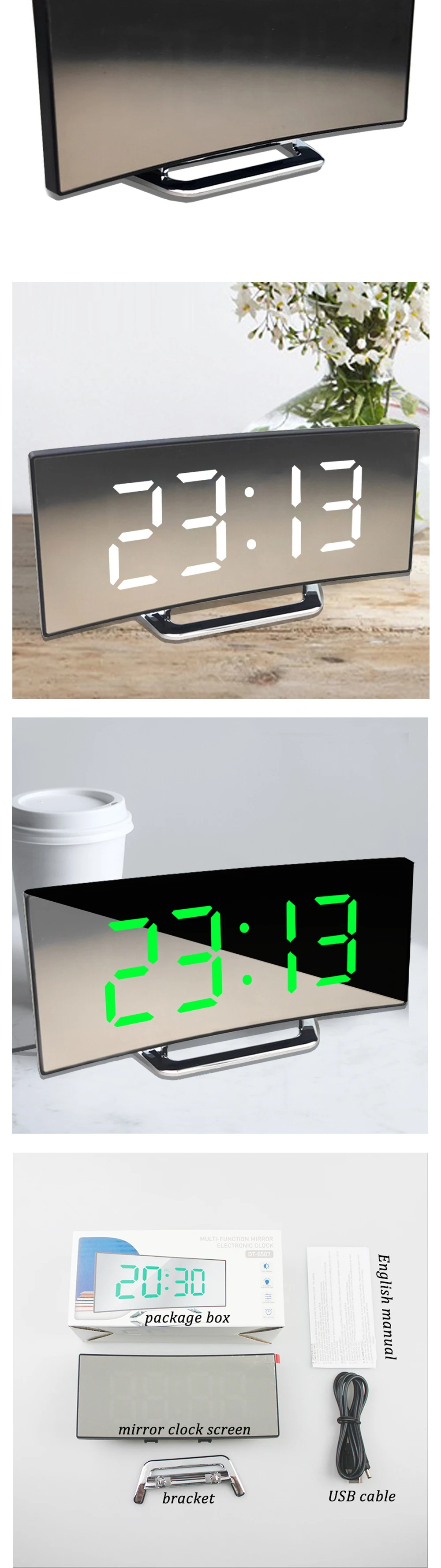 Изогнутый цифровой будильник со светодиодный ным экраном для детской, спальни, гостиной, функция повтора температуры, домашний декор, Большие Настольные Часы