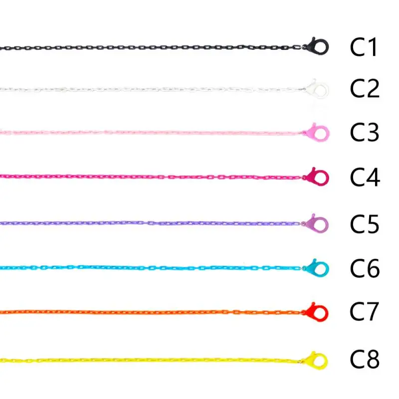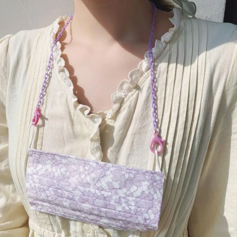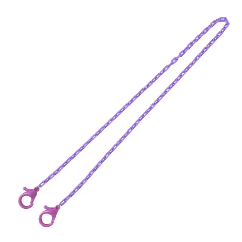 Характеристики:Название продукта: цепочка для маски Материал: пластик Цвет: черный, белый, розовый, розовый, красный, фиолетовый, синий, оранжевый, желтый Размер веревки: 56 см * 4 мм Вес изделия: 4 г