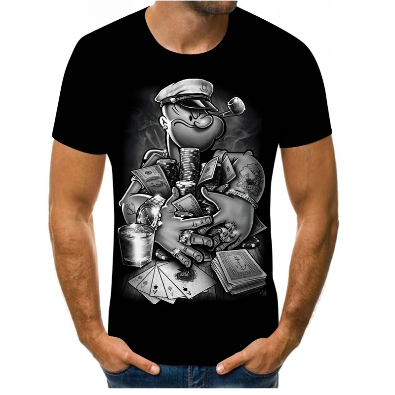 Футболка мужская с 3D-принтом аниме Popeye, модная уличная одежда, ...