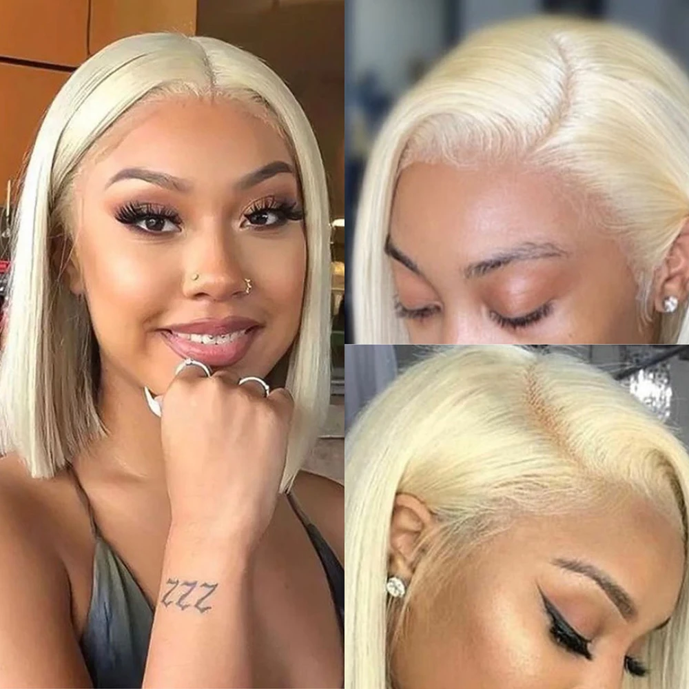 Парик 613 медовый блонд 13x4 на шнурке, волосы Реми, короткий парик Боб Staright, 150% бразильский парик из натуральных волос с детскими волосами, предварительно выщипанные