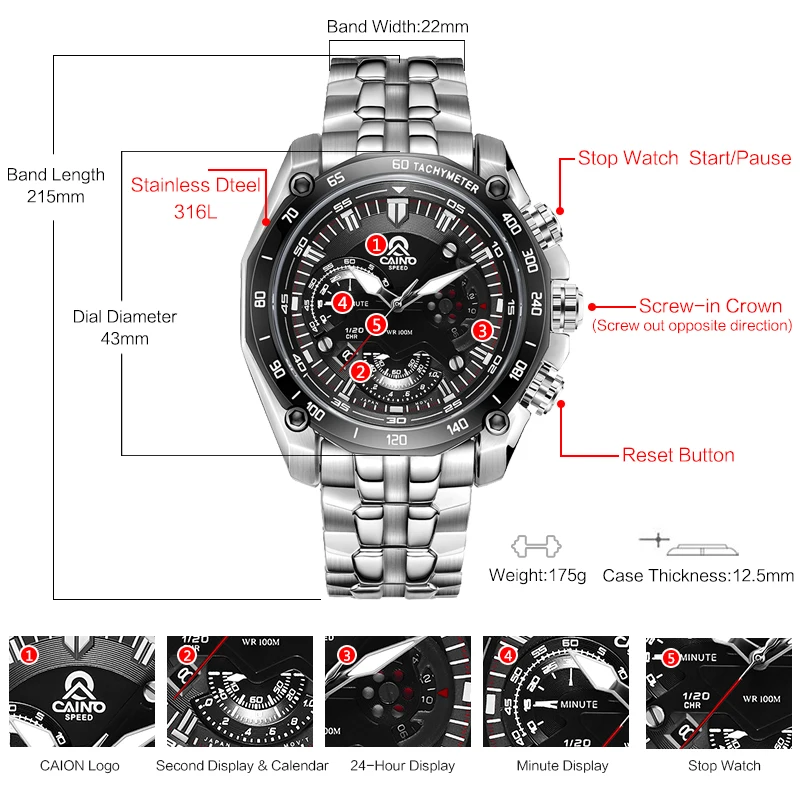 CAINO Для мужчин спортивные часы хронограф Дата 100 м Водонепроница...