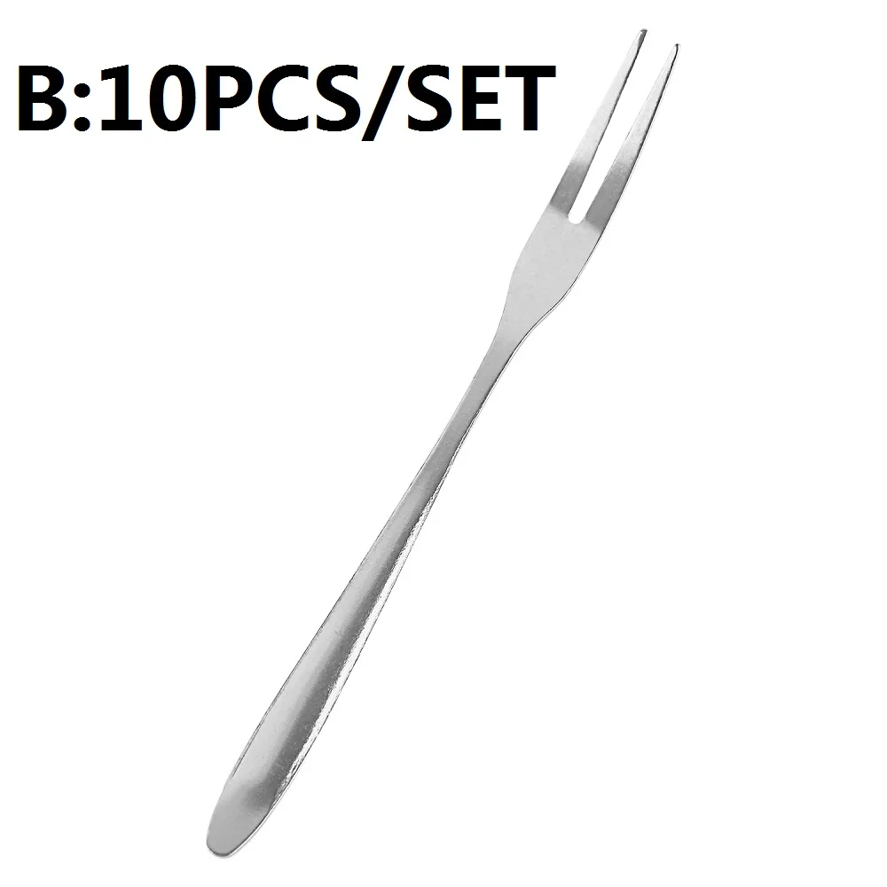 510 шт. Нержавеющаясталь двух-телескопический зуб бороны фруктовая вилка закуска пирог десерт вилки посуда в западном стиле кафе дома столовые приборы Кухня аксессуар