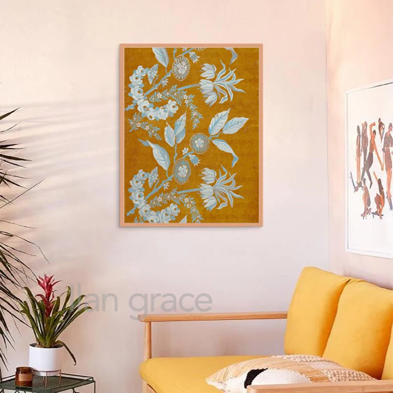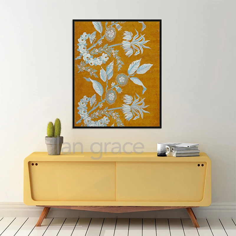 ThemeTan Ochre Antique Flower Painting Canvas Prints