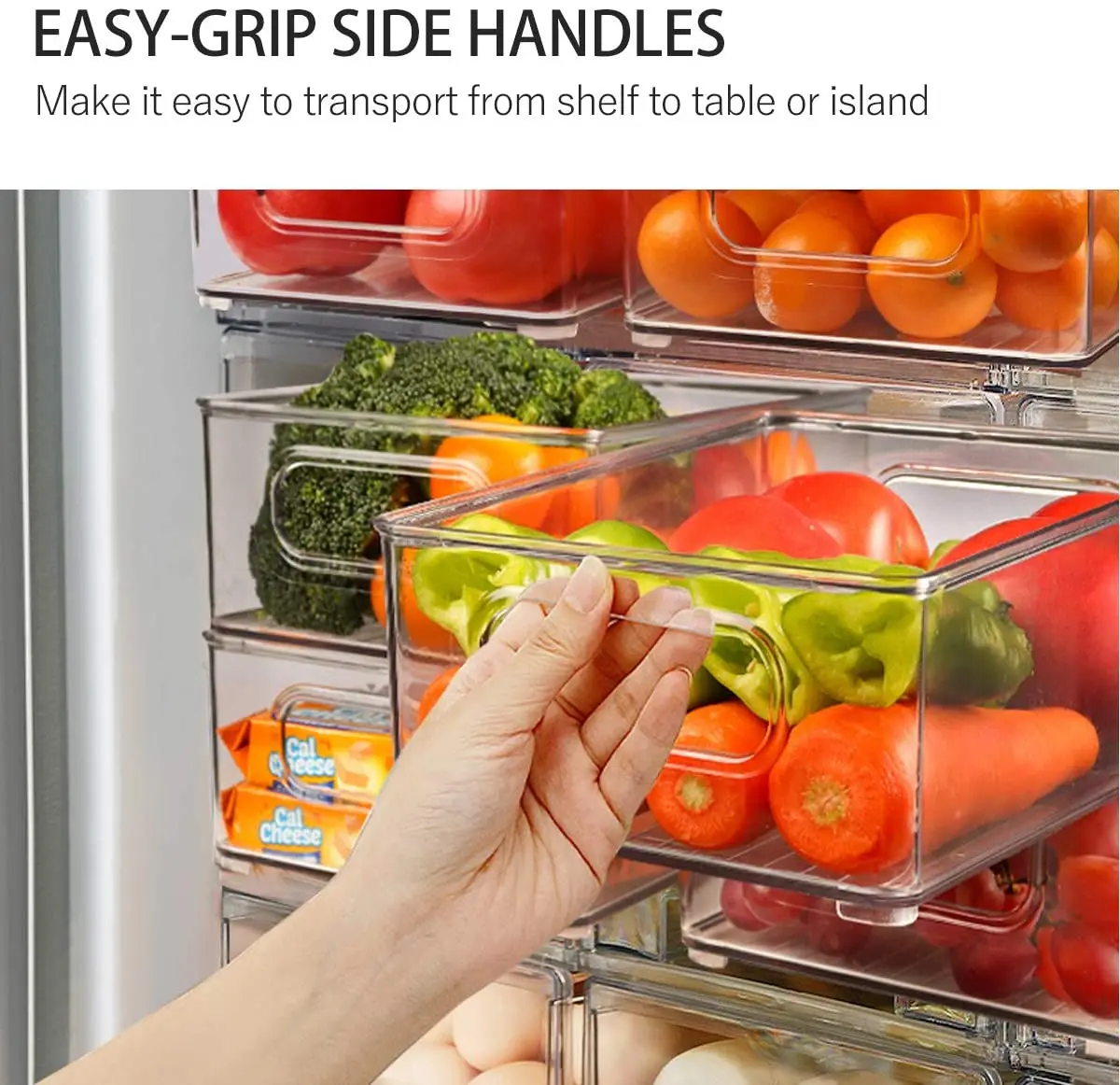 2. Простое хранение: идеальный размер для фруктов, овощей, йогурта, консервов, сыра, мяса, а также подходит для хранения сухих продуктов в кладовке.