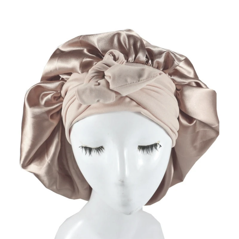 Женский цветочный шелковистый полиэфирный ночной Чепчик для сна, головной убор для волос, Женская Повседневная широкая повязка на голову, Атласная шапочка для душа, тюрбан