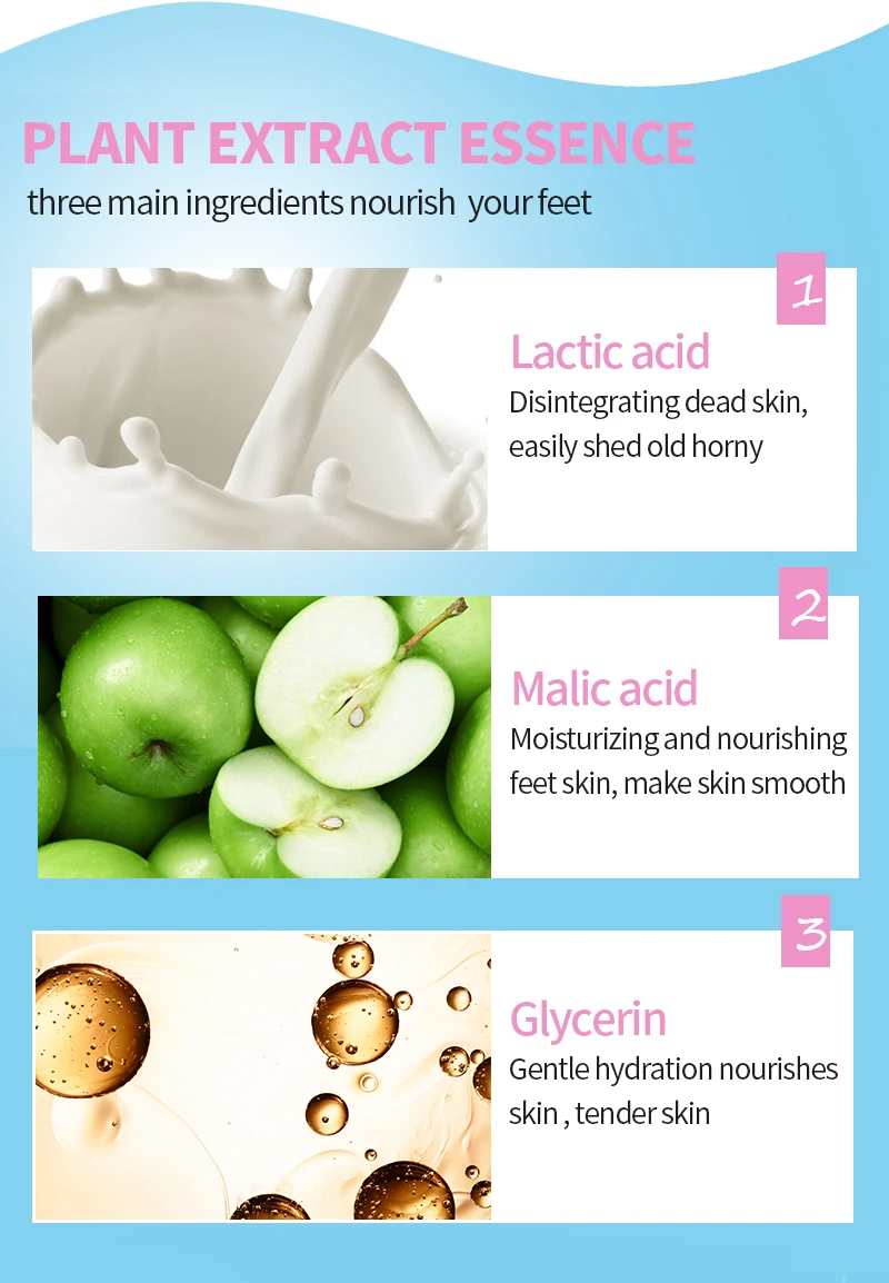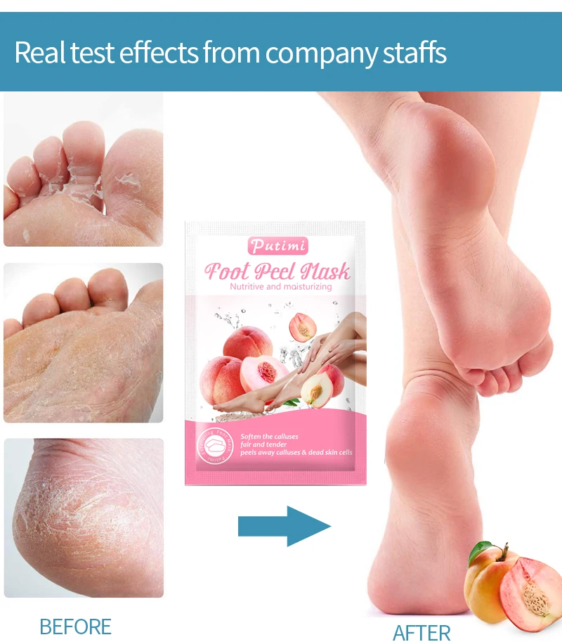 5. Большинство людей начинают отшелушивать омертвевшую кожу после 48 часов использования, но из-за разного типа кожи кому-то может понадобиться 2-3 пары, пожалуйста, используйте маску для ног спустя 48 часов.