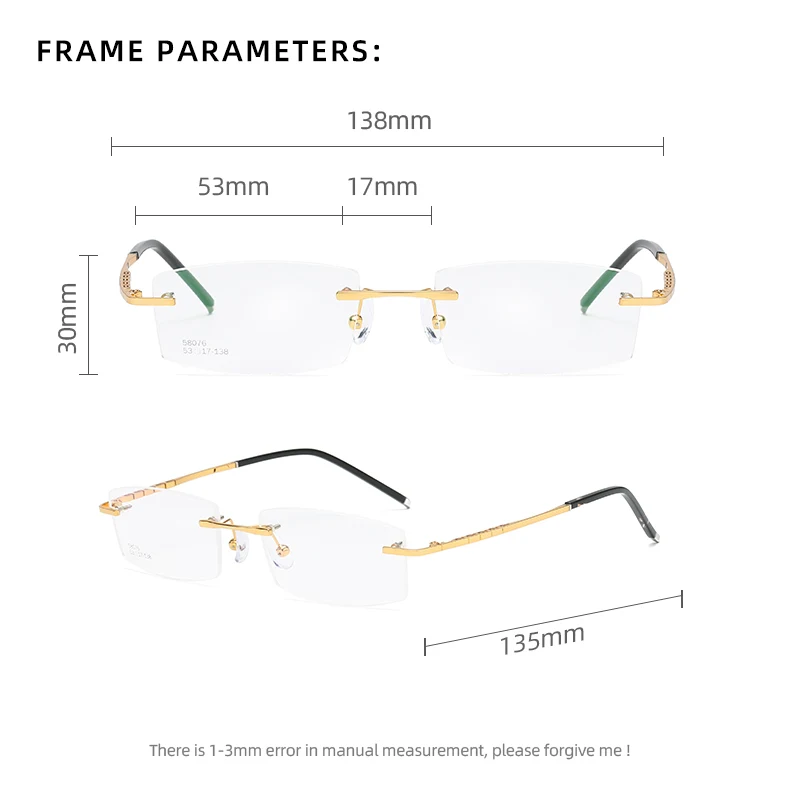 Очки мужские и женские прямоугольные без оправы, без оправы, из титана