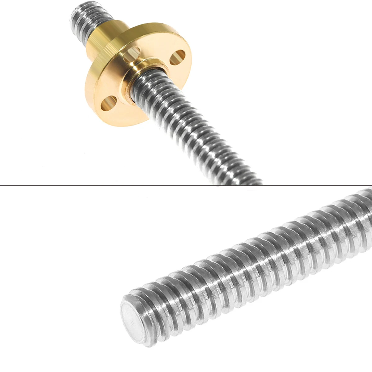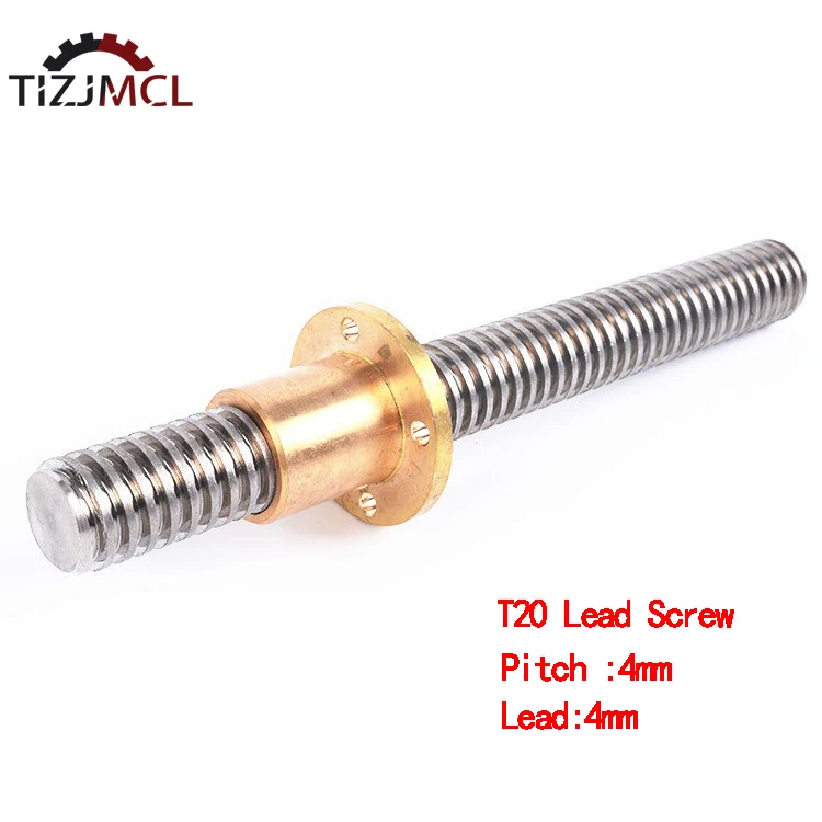 Свинцовый винт T20 для 3D-принтера CNC, трапециевидный винт с латунной гайкой, 100, 150, 200, 250, 300, 350, 400, 500, 600, 1000 мм, пиксель 4 мм