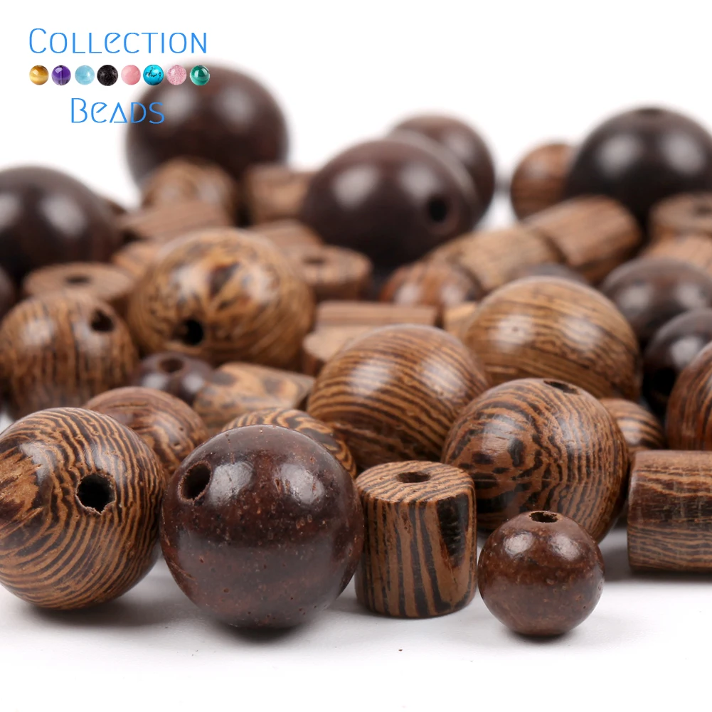 Натуральные цилиндрические круглые деревянные бусины венге, разделитель, россыпью деревянные бусины для изготовления ювелирных изделий, браслетов, аксессуаров сделай сам