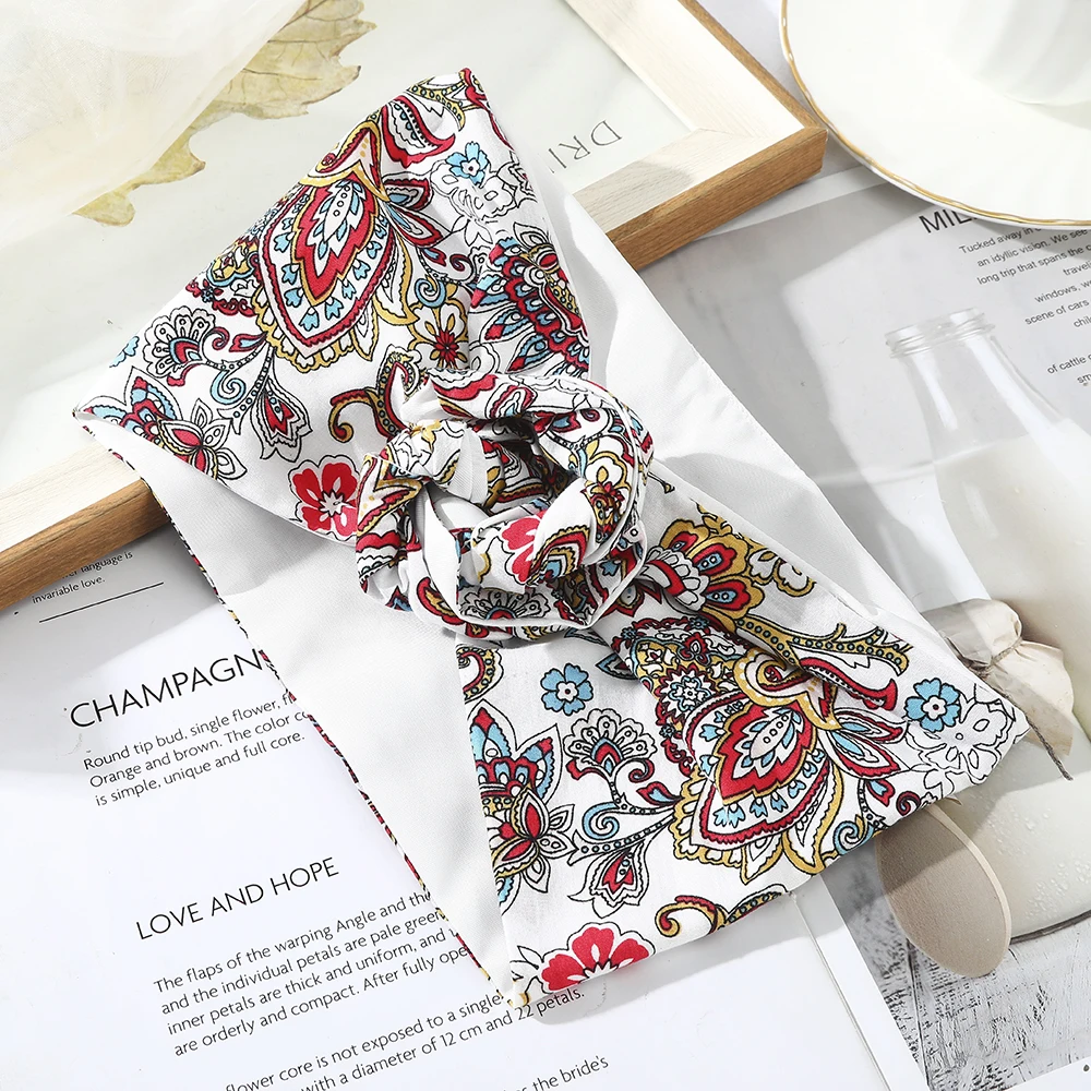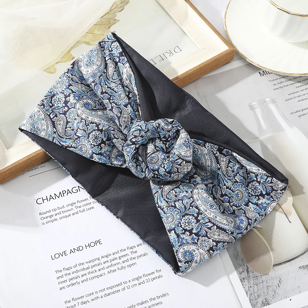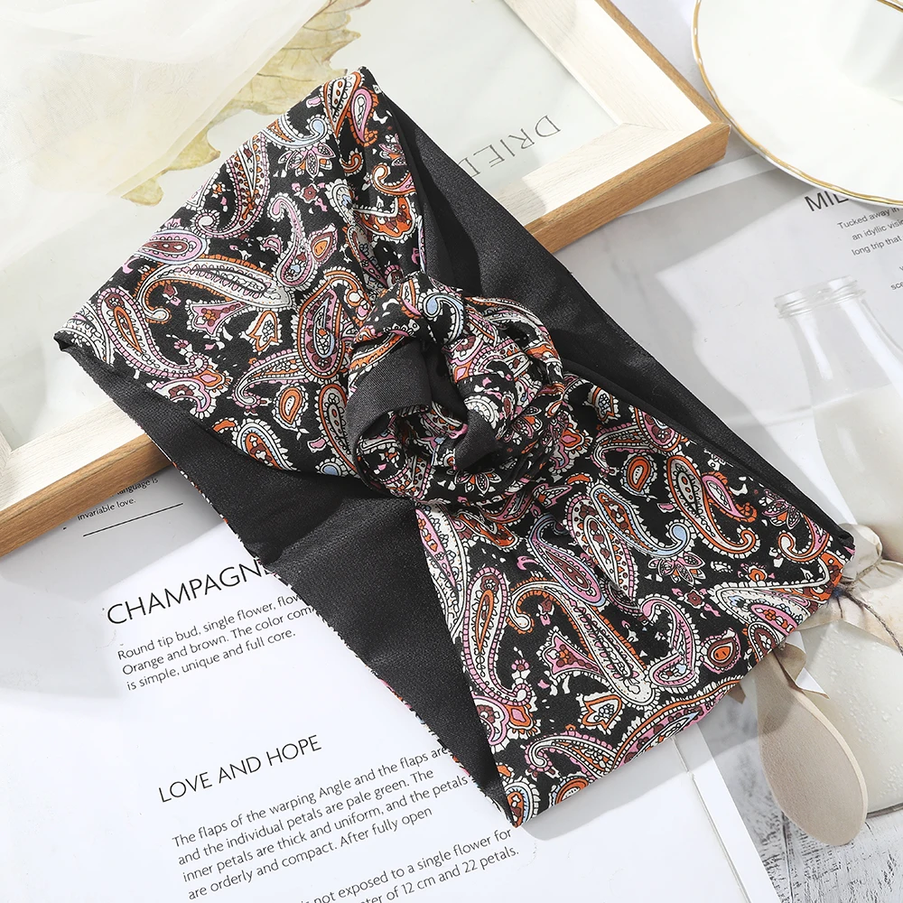 Женская винтажная повязка с принтом тюрбан бандана, широкий ободок для волос, регулируемый головной убор, аксессуары для волос