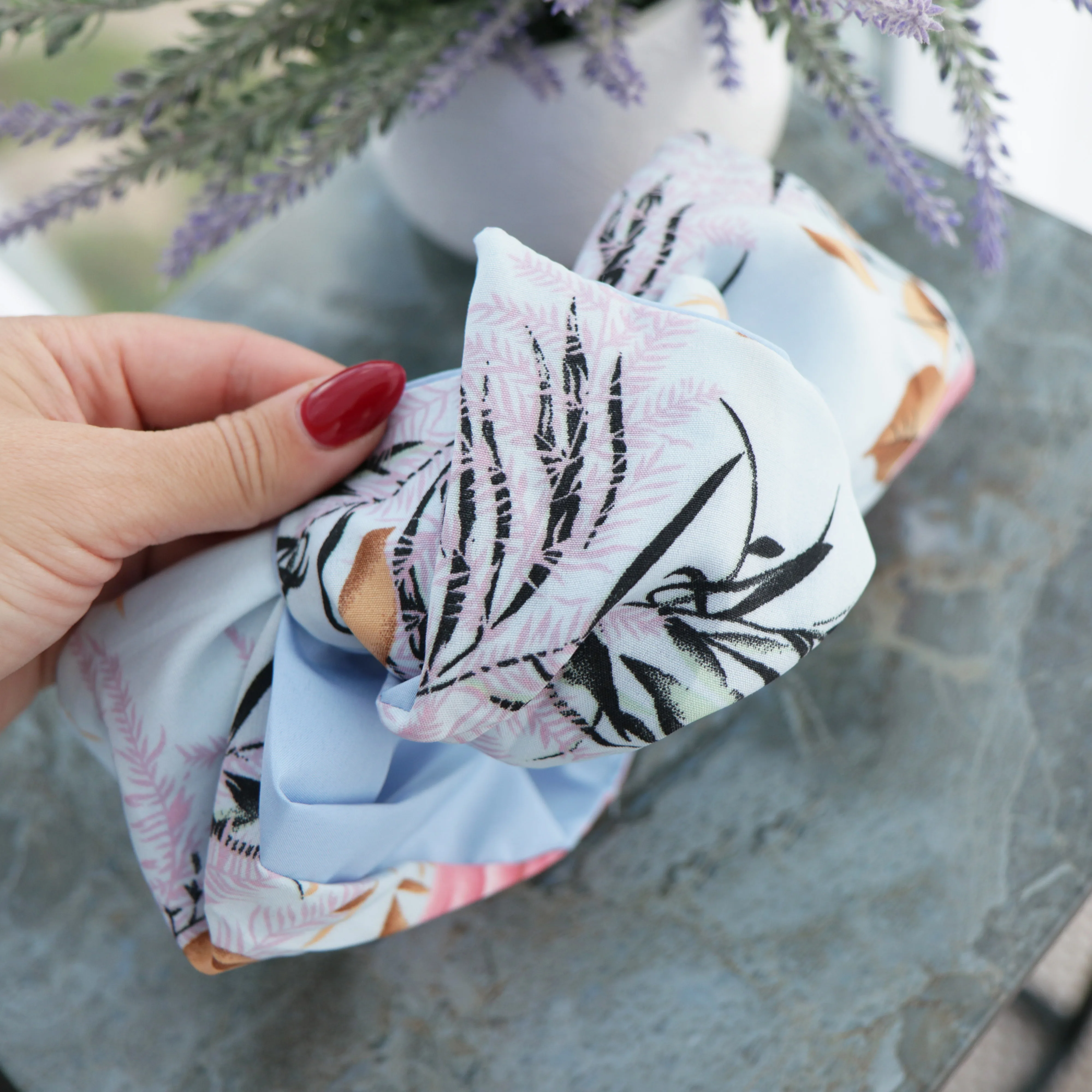 Очень интересная повязка с гибкой проволокой. Повязка дает возможность фантазировать с новыми прическами и образами. Выполнена повязка из приятной ткани, она не тянется. Красивая яркая расцветка. Внутри по всей длине вставлена проволока, которая хорошо гнется и благодаря ей можно сделать сверху пучок и экспериментировать с прическами. Очень длинная, 90см, ширина 15 см, подойдет как взрослым, так и детям.