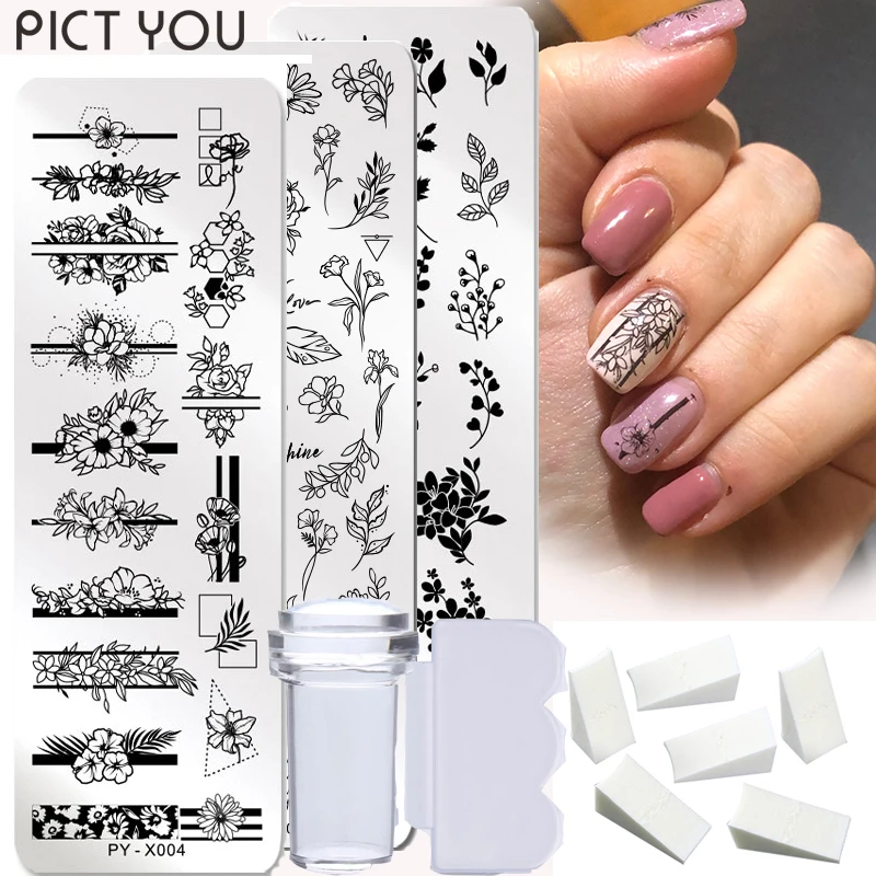 Пластины для стемпинга ногтей, 9 шт.компл., геометрические кружева, цветок, листья, скребок, губка, инструменты пластина с изображениями для нейл-арта