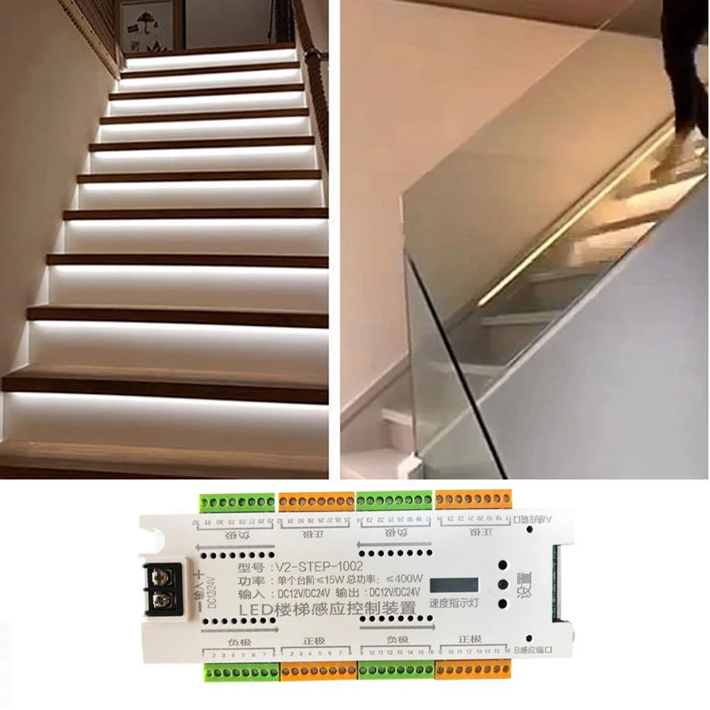 Светодиодная лента с пассивным ИК датчиком движения для лестниц, 32 канала, контроллер движения для лестниц, 12 В24 В постоянного тока, обтекаемый светильник для лестниц