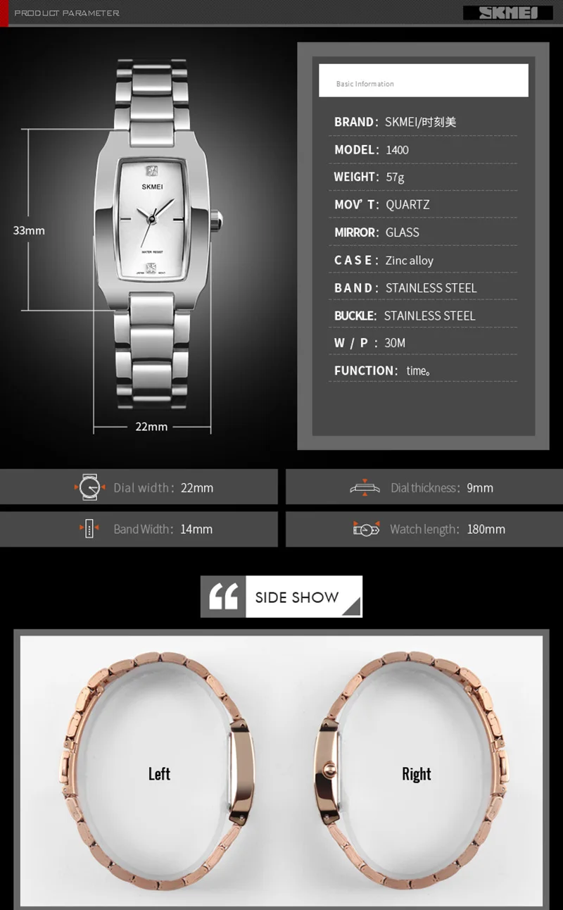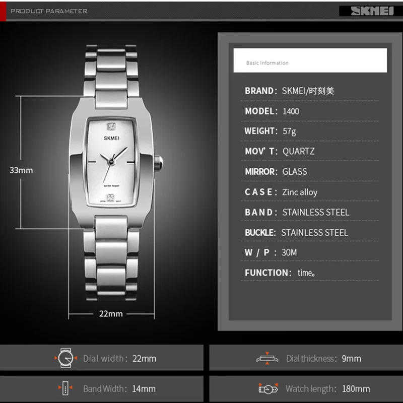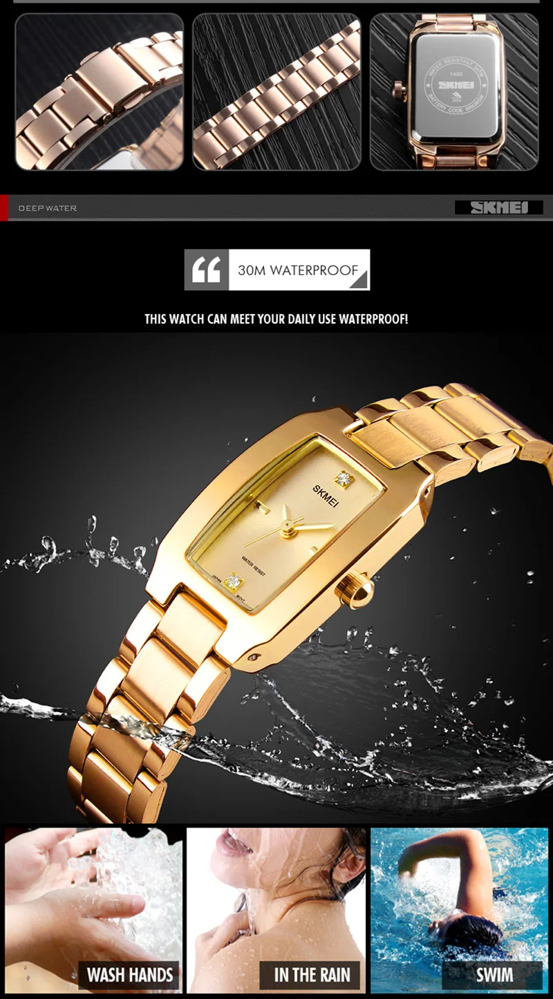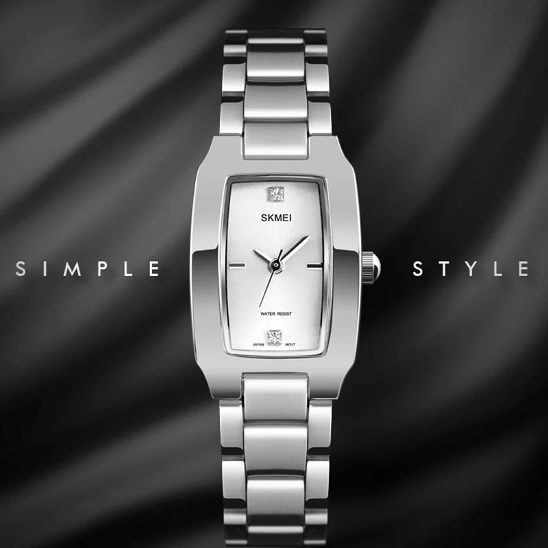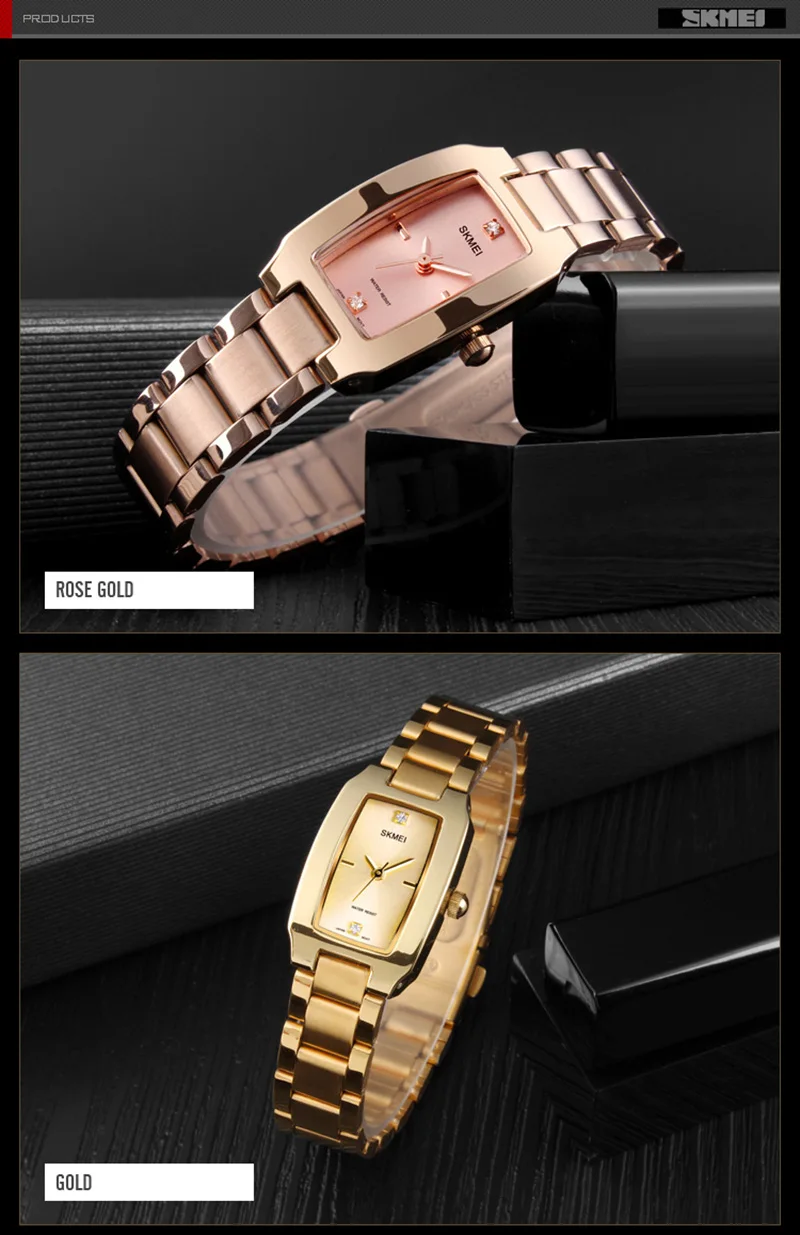 SKMEI женские часы с прямоугольным циферблатом элегантные кварцевые Японские Женские наручные часы золотые часы с браслетом из нержавеющей стали montre femme