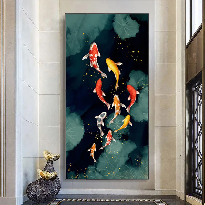 Абстрактная Картина на холсте в китайском стиле с изображением рыбного карпа, лотоса, пруда, для украшения гостиной, домашний декор, настенное искусство